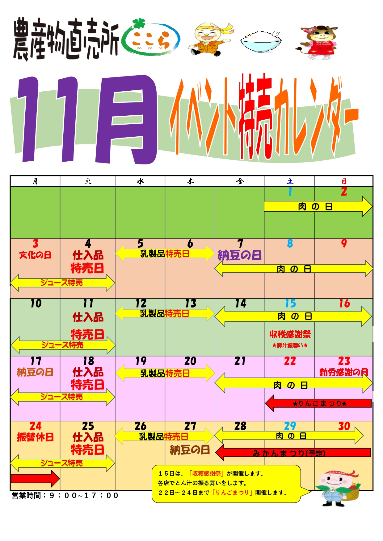 農産物直売所「ここら」11月イベントカレンダー