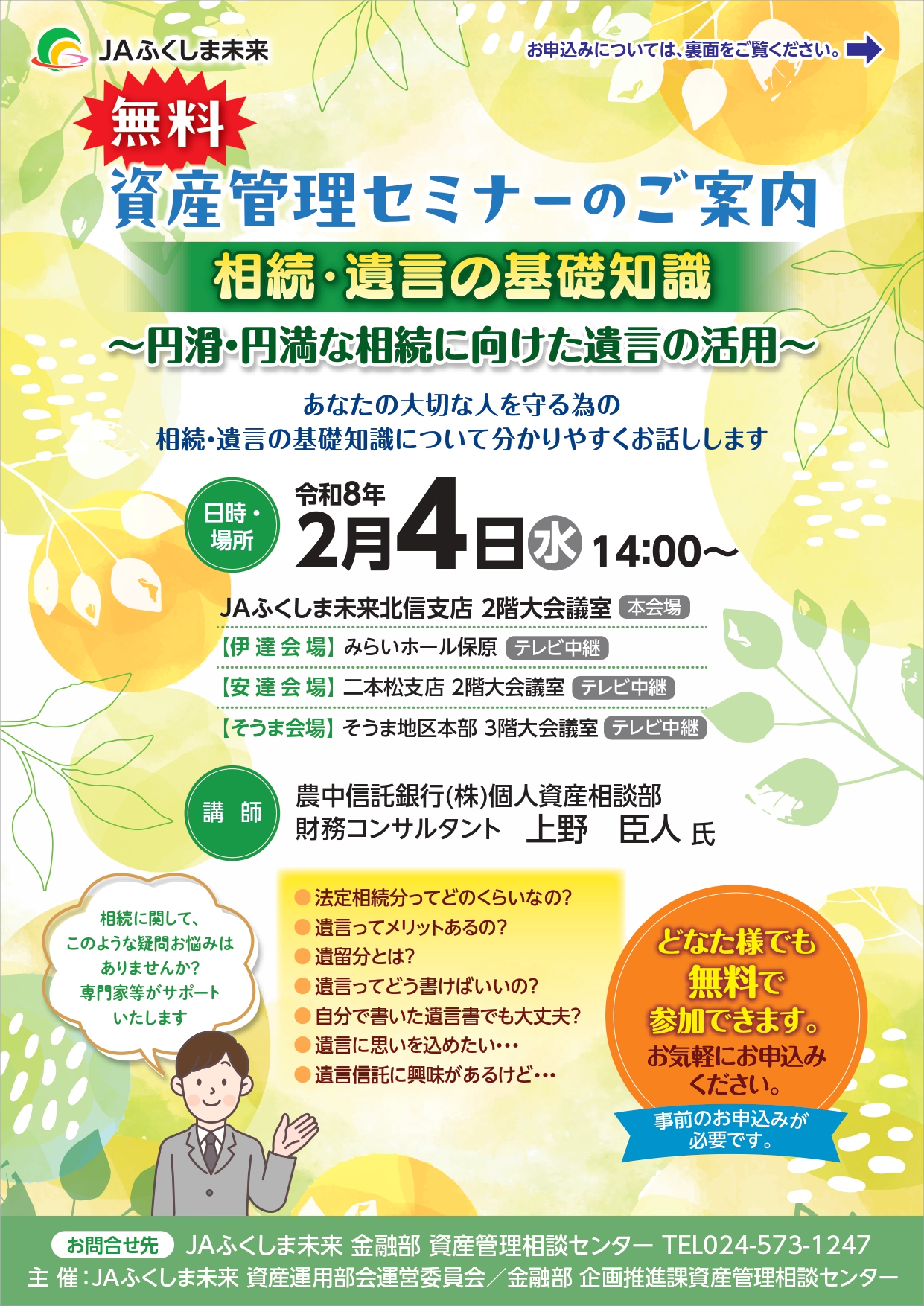 資産管理セミナーのご案内「相続・遺言の基礎知識」~円滑・円満な相続に向けた遺言の活用~