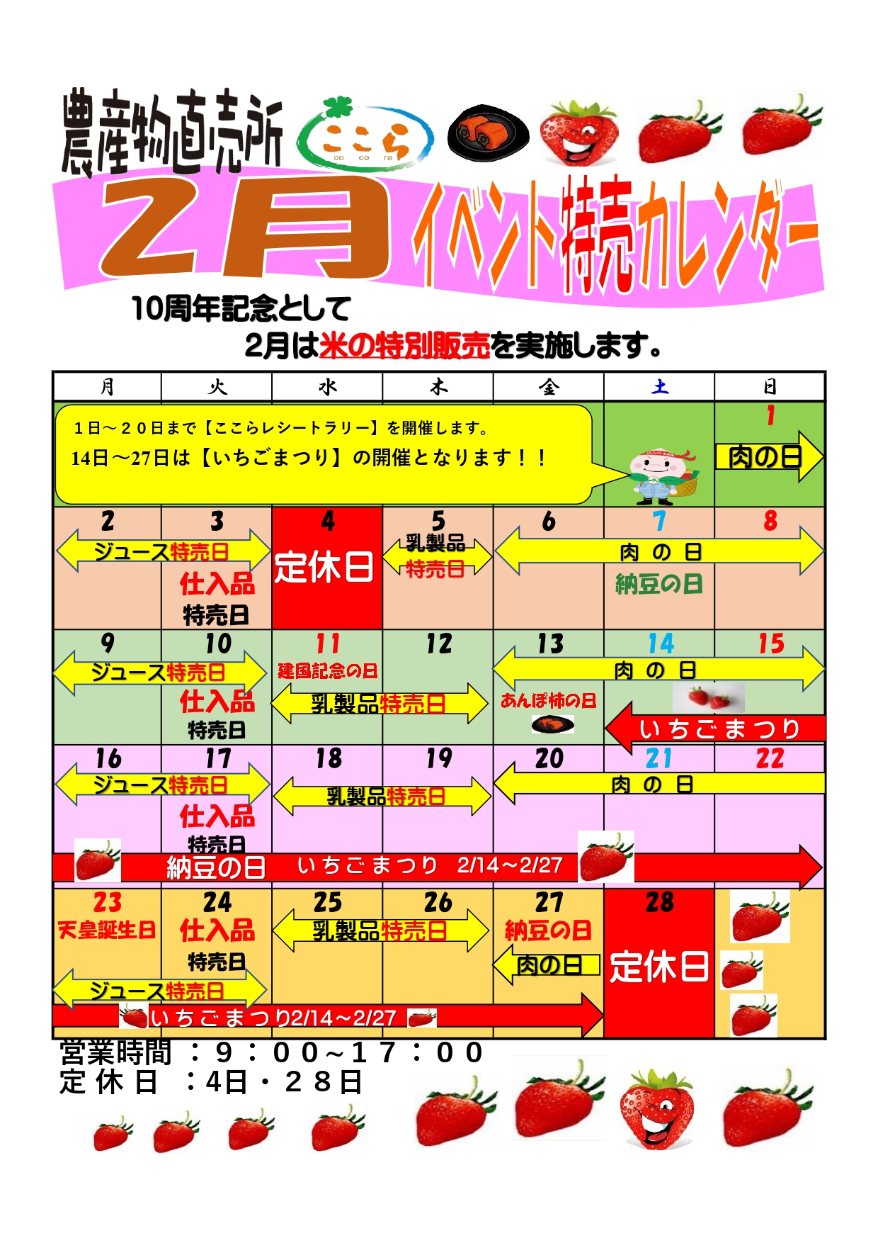農産物直売所「ここら」2月イベントカレンダー