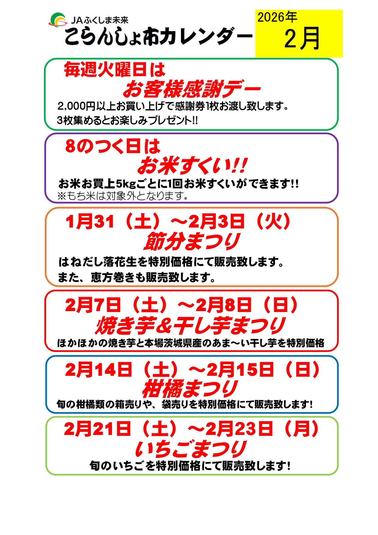 農産物直売所「こらんしょ市二本松店」1月イベントカレンダー
