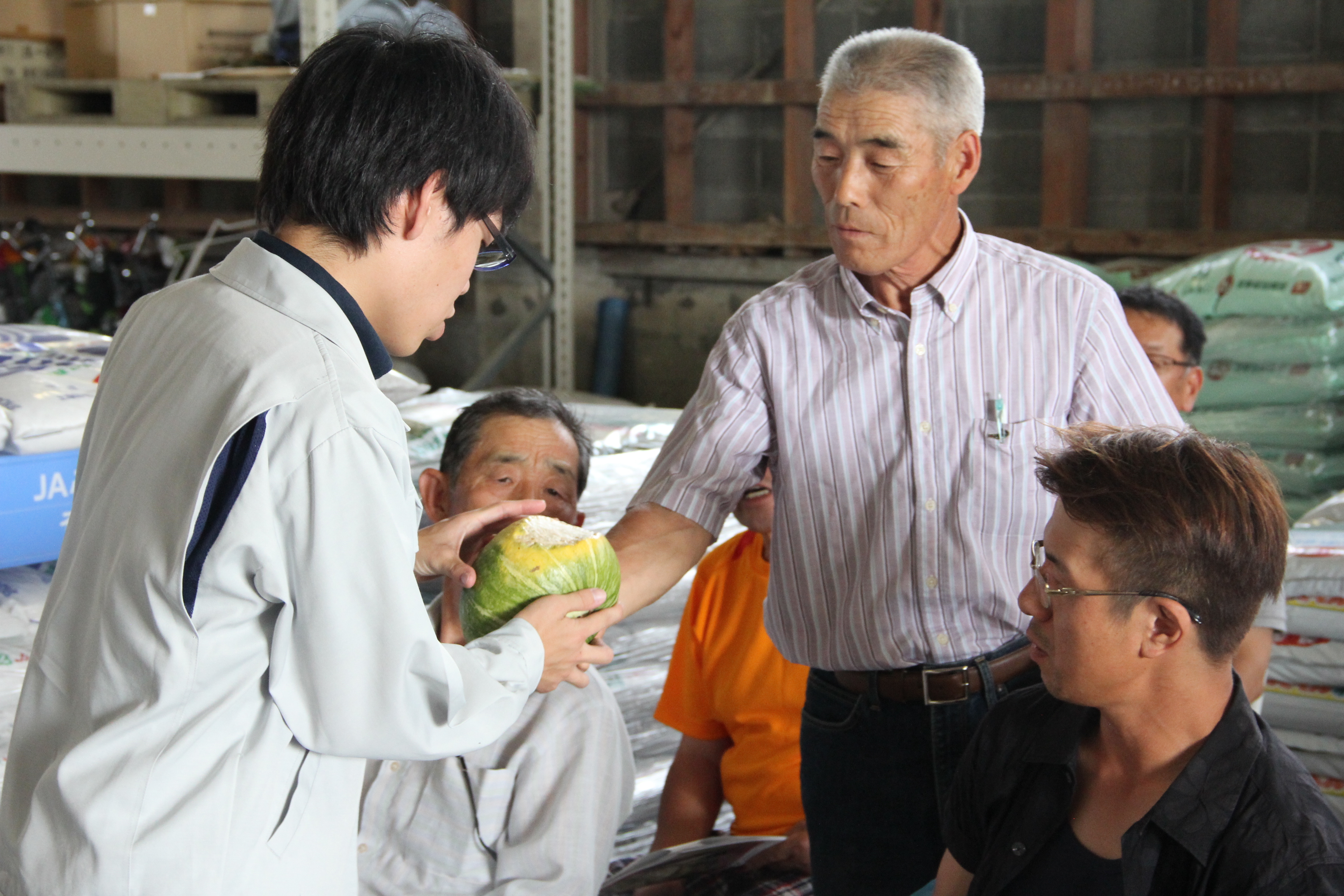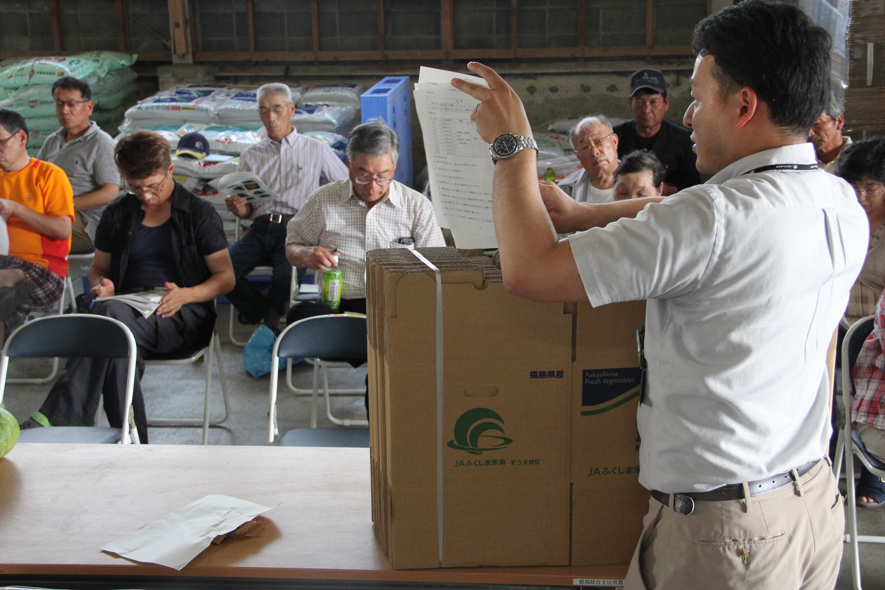 当JAそうま地区は3日、平成30年度かぼちゃ出荷規格指導会を鹿島営農センターで開きました。生産者12人が参加し栽培期間のラストスパートに向けて、収穫時期や販売情勢、出荷規格などについて情報を共有しました。