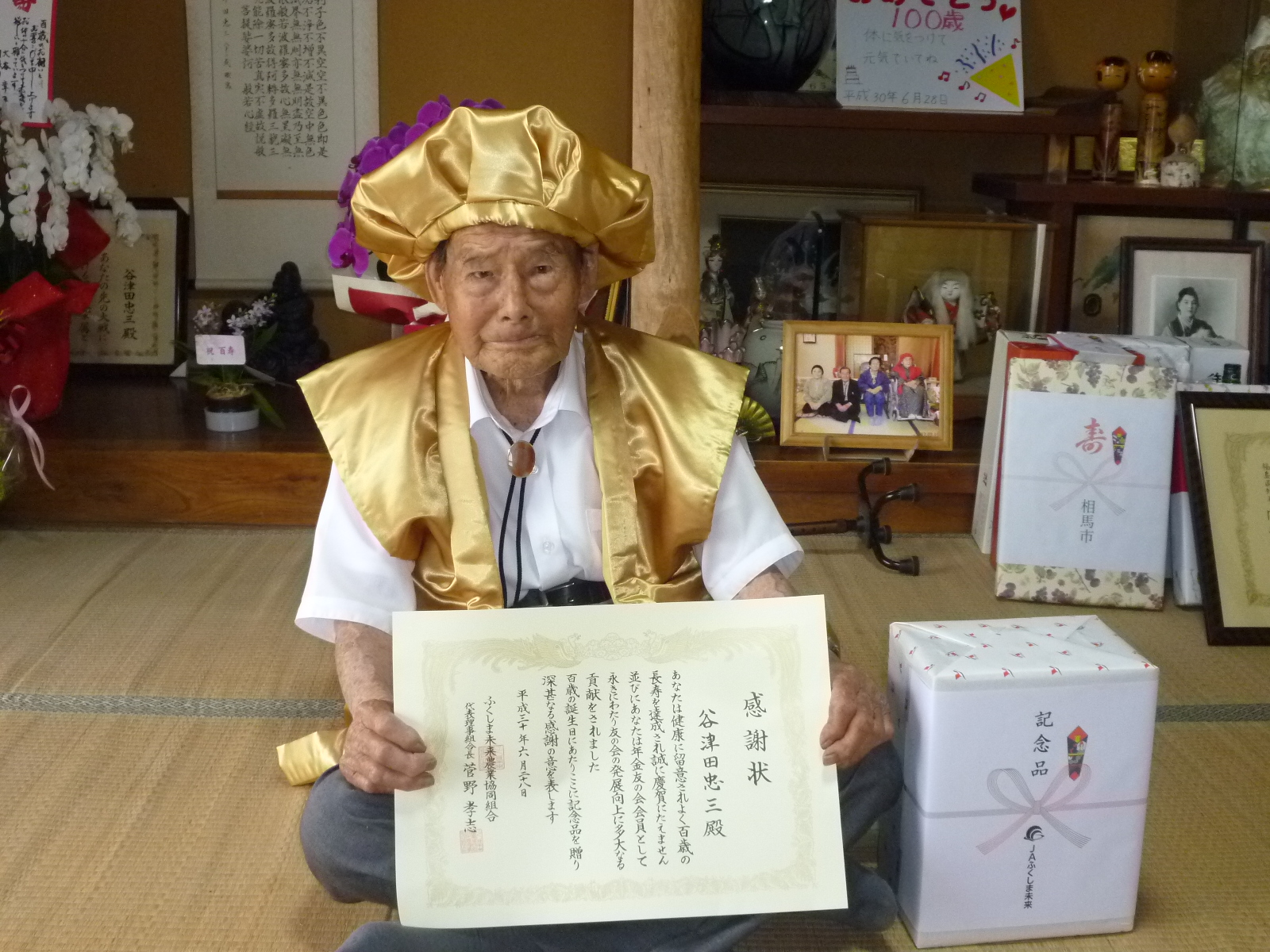 28日には同市の谷津田忠三さんが100歳を迎えました。当JAの伊東千恵子理事と年金友の会相馬中村支部の坂本正美会長が忠三さんの自宅で感謝状と記念品を贈呈しました。