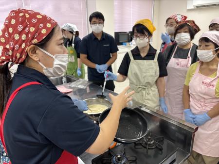 研修では、「米粉クレープ」をテーマに実際に当日の流れに沿って行う模擬授業や、伊達地区食育トレーナーの清野公弘さん監修の米について学ぶ「農業のお話」に取り組みました。所属の異なる職員や女性部員がコミュニケーションをとり、地域とのつながりを強化する機会となりました。