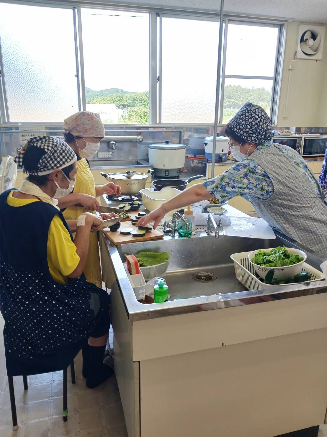 講師は女性部員の大内友子さんが務め福祉協議会主催の防災講習会で教わった災害時料理と題して鍋で作るごはん・あさり缶と春雨のスープ・大豆ミートを使ったナスのそぼろあんかけ・さば缶と叩ききゅうりの和え物を調理しました。