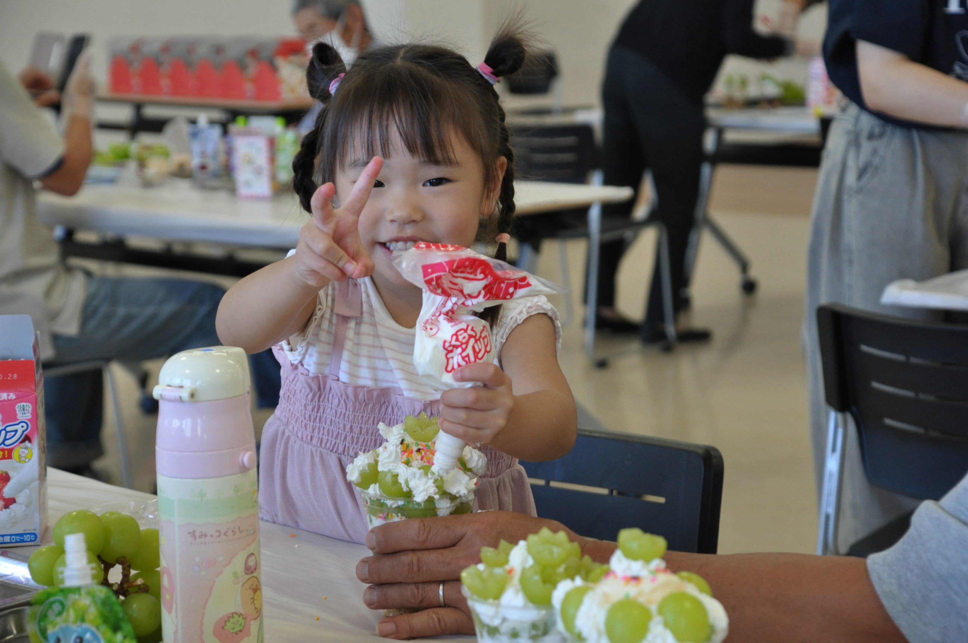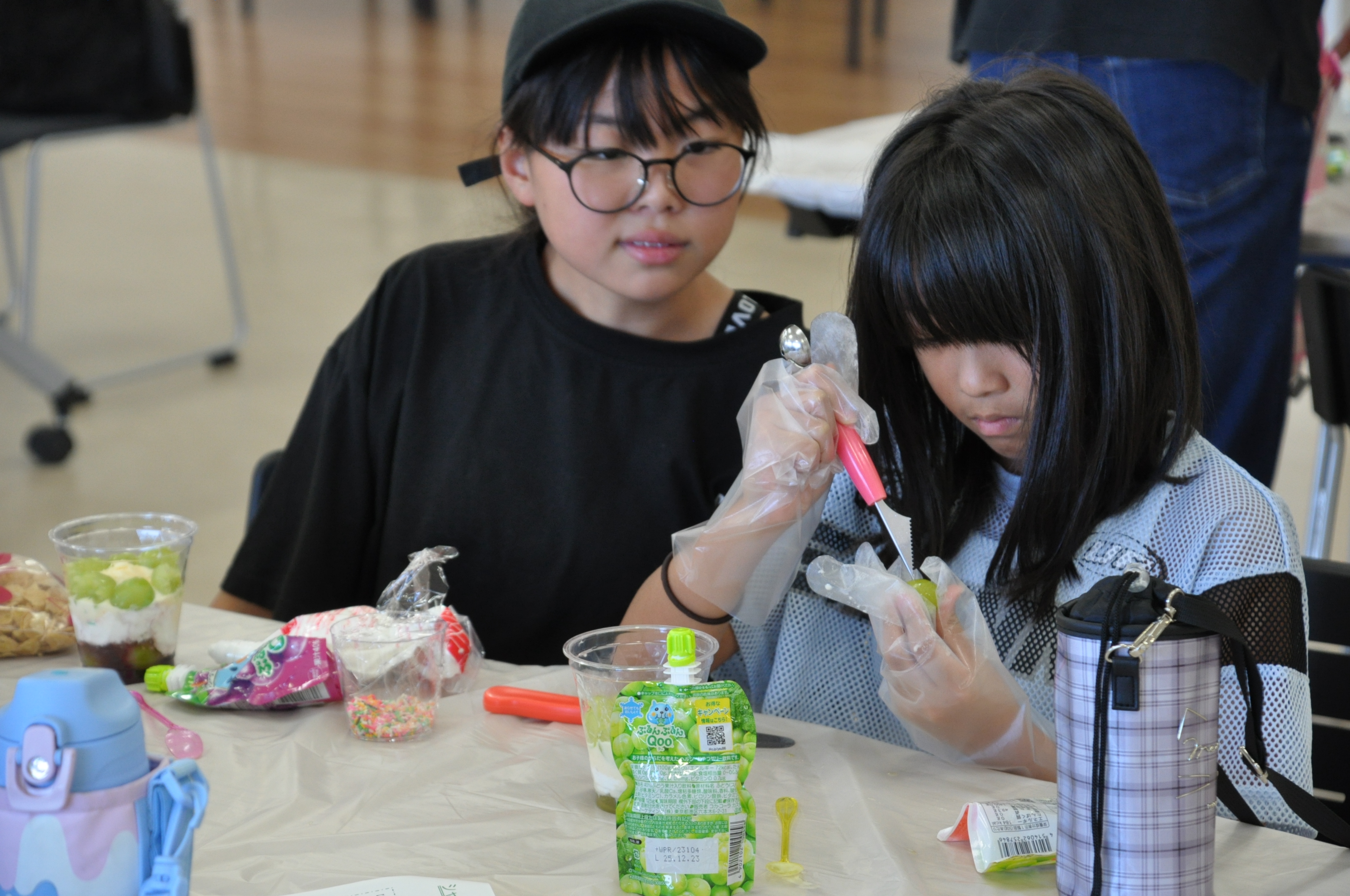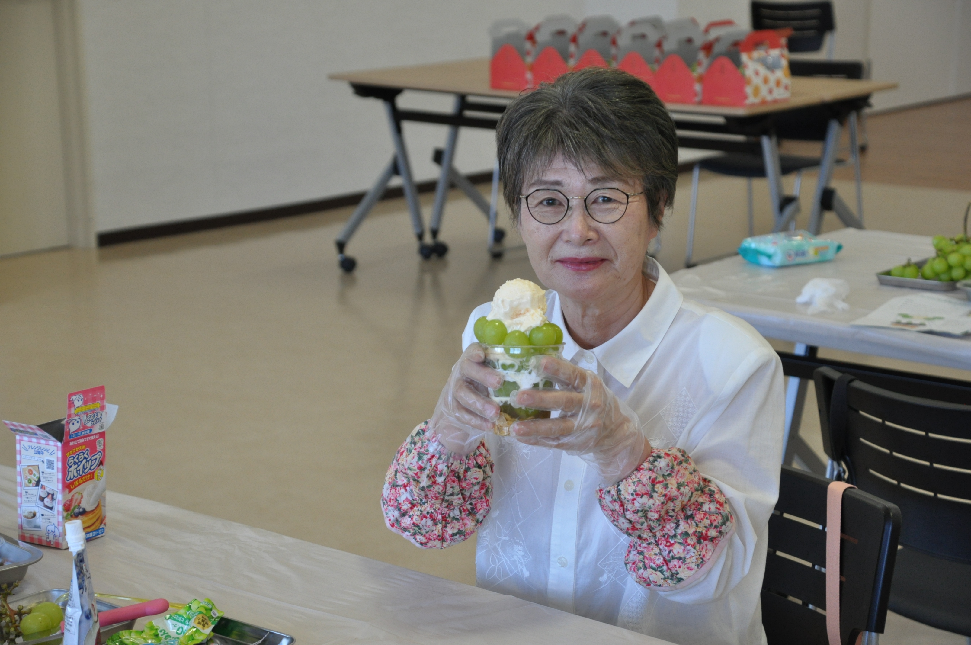 JA土壌分析センターでは、稲村典幸職員から土壌分析の流れについて説明を受けました。みらいホールやながわでは、梁川営農センターの梅津英幸センター長がシャインマスカットについて説明。参加者は梁川産のシャインマスカットを使ってパフェづくりに挑戦し、思い思いのパフェを完成させ味わいました。子どもから大人まで「とても楽しい時間だった」と笑顔を見せました。