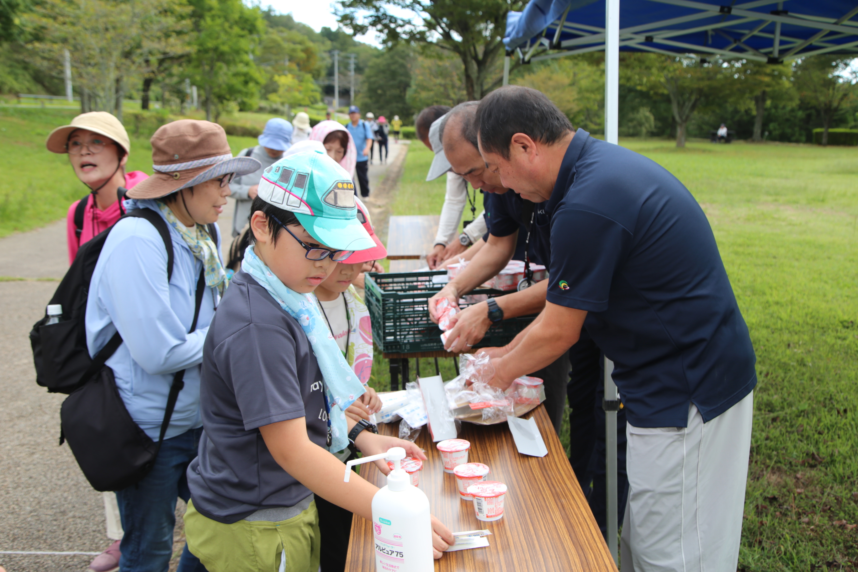 ウォーキング終了後には、女性部そうま地区原町総合支部の部員らが用意した豚汁とおにぎりが振る舞われ、参加者は和やかな雰囲気の中でイベントを楽しみました。
