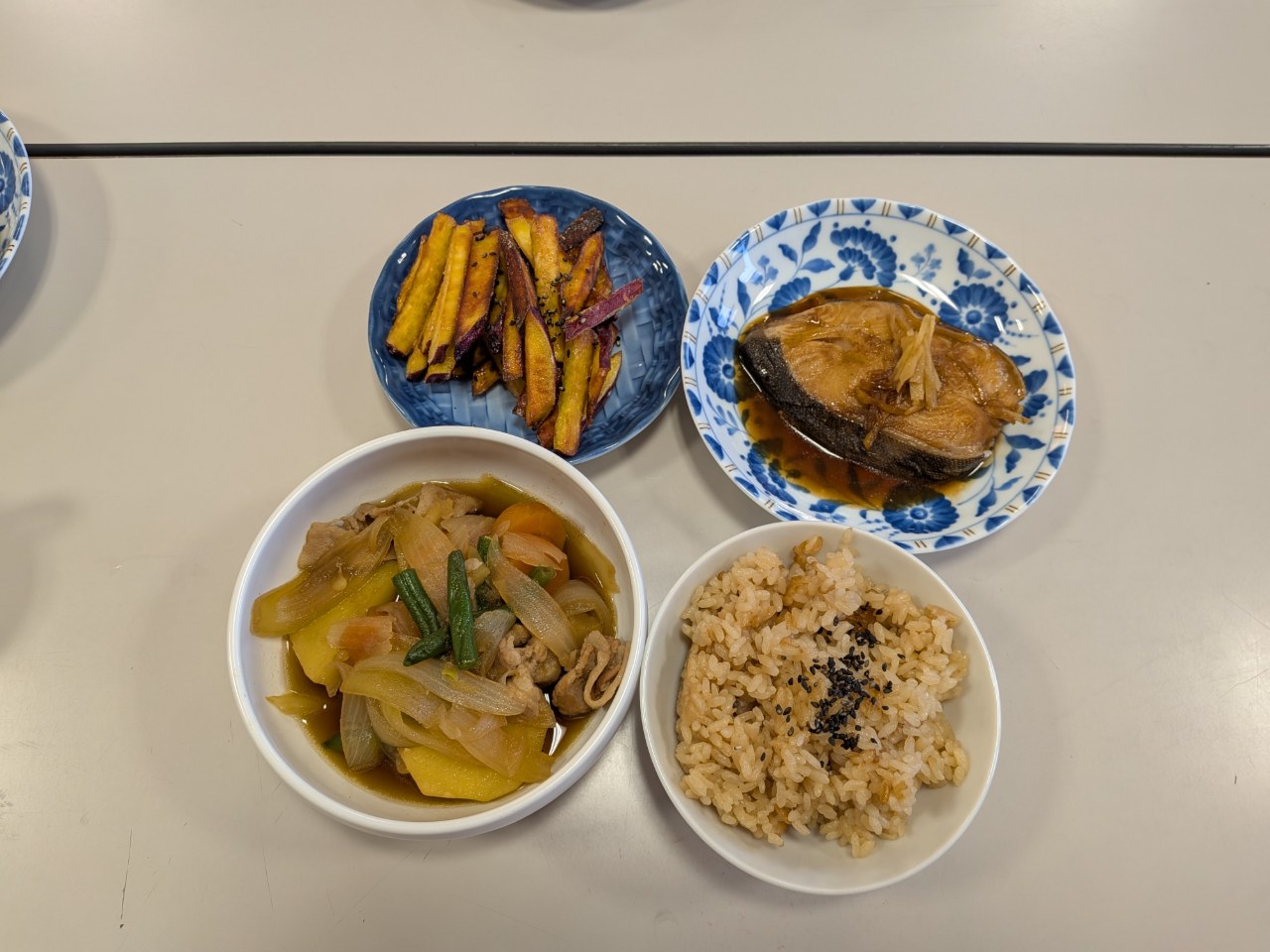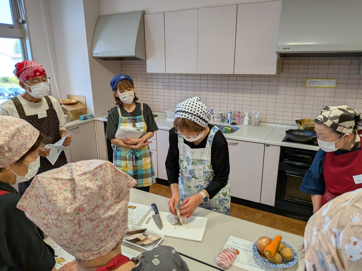 栄養士で家庭料理研究の佐藤徹子さんの指導で「煮魚」「しょうゆご飯」「肉じゃが」「さつま芋かりんとう」の4品を調理しました。参加者は「銀タラの下処理で味の違いをあらためて感じ勉強になった」と話しました。