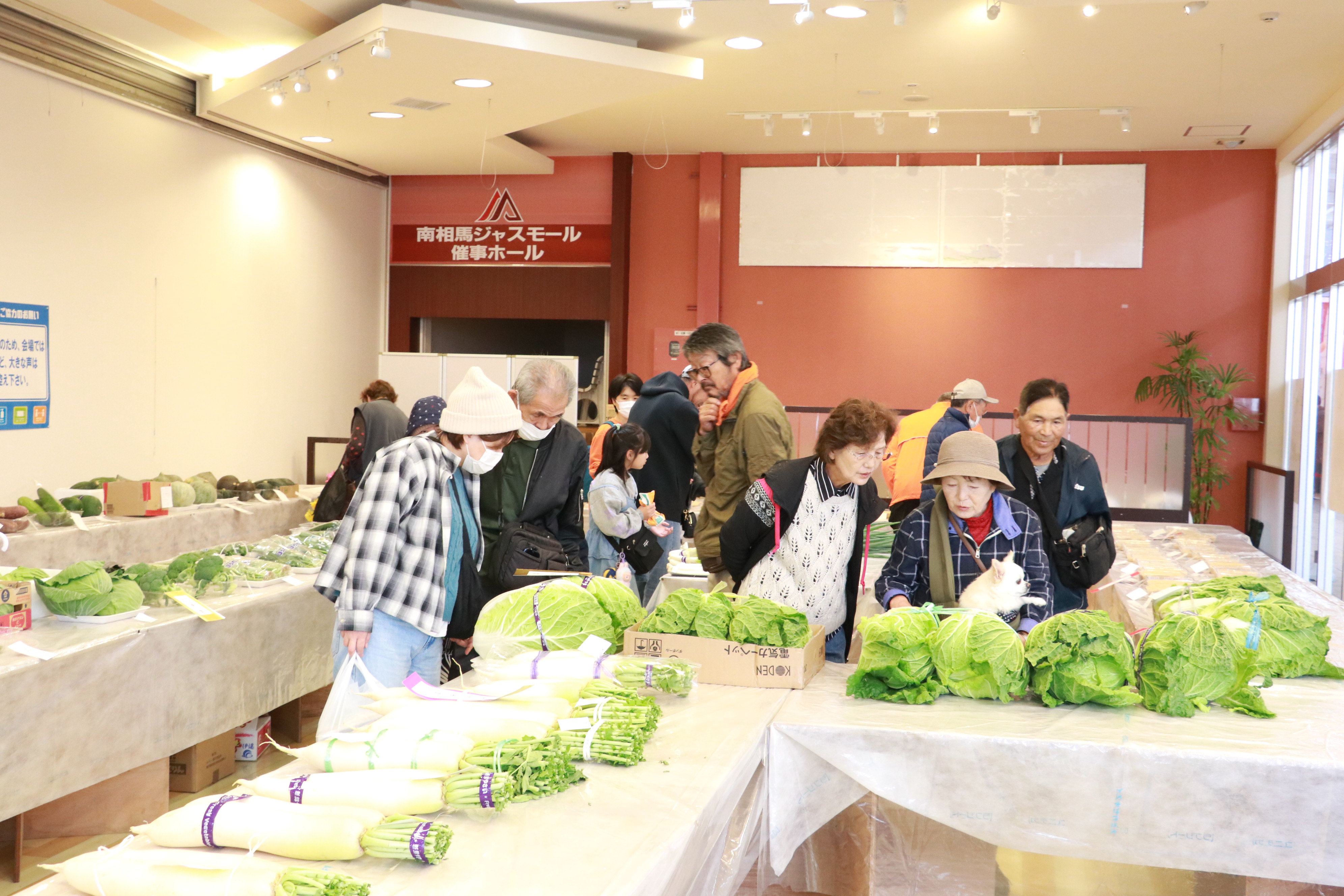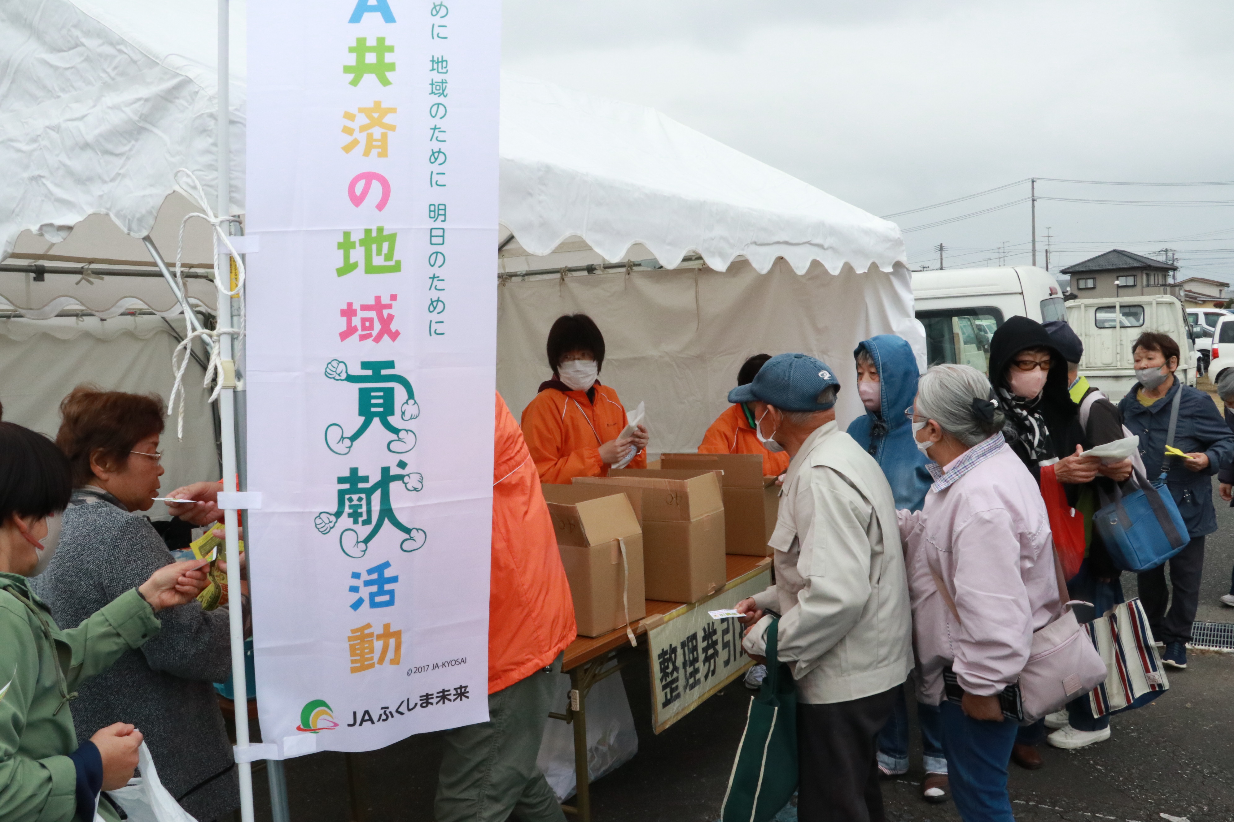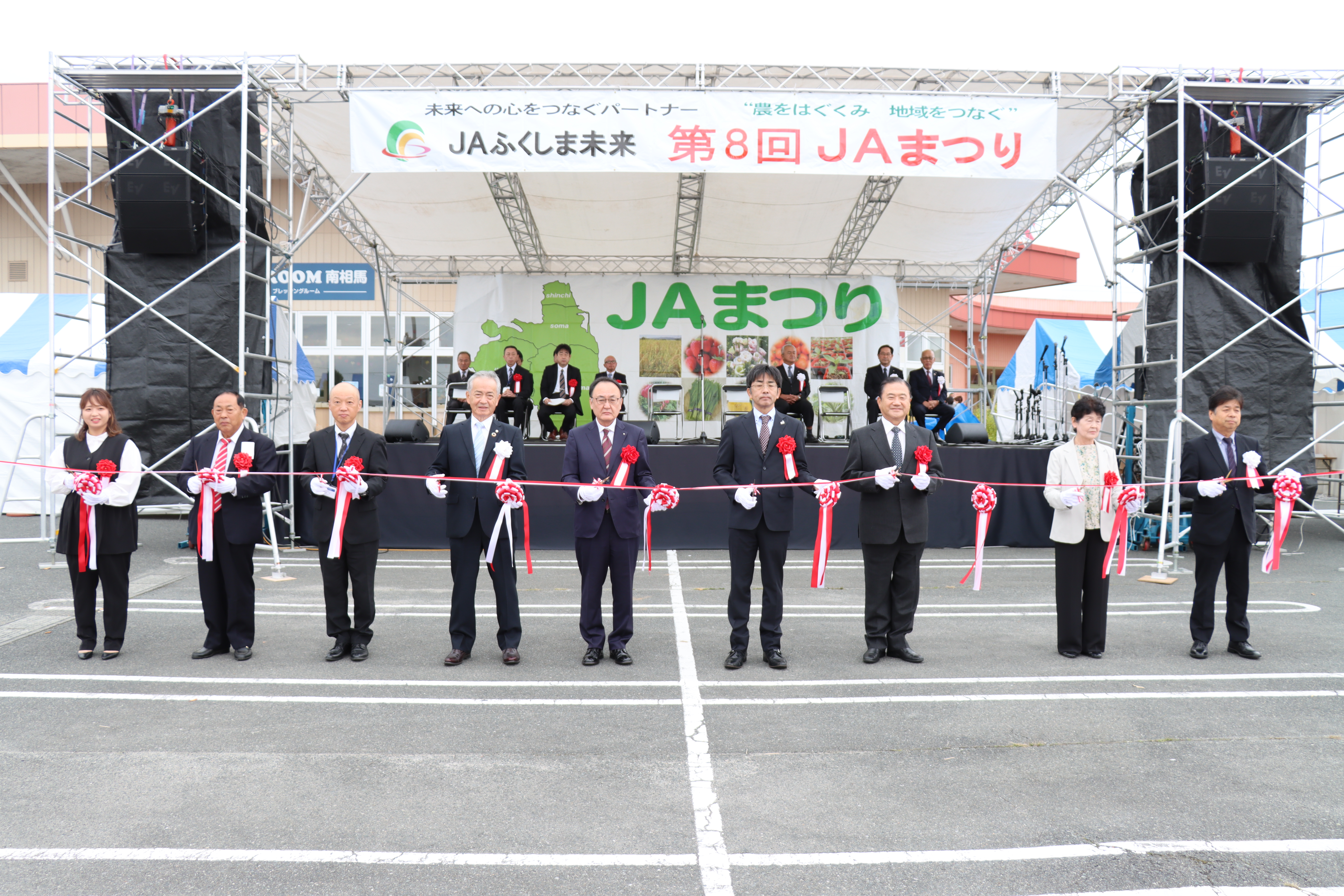 当JAそうま地区は25日から2日間、南相馬市原町区の南相馬ジャスモール特設会場で第8回JAまつりを開きました。国消国産をテーマに地元の特産品の販売や飲食の提供、米販売、高校生による農産物販売、JA職員による屋台販売、大抽選会、キッズランド、投げ餅などを行いました。