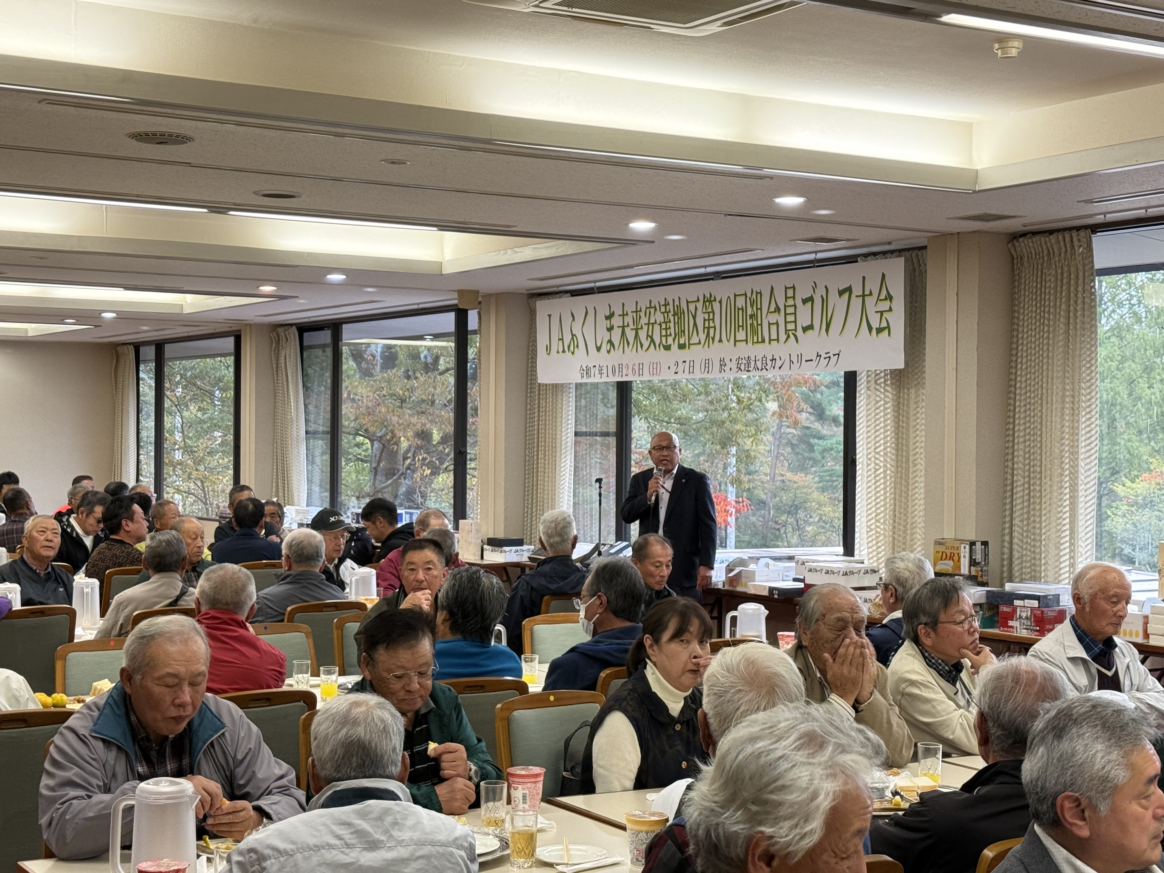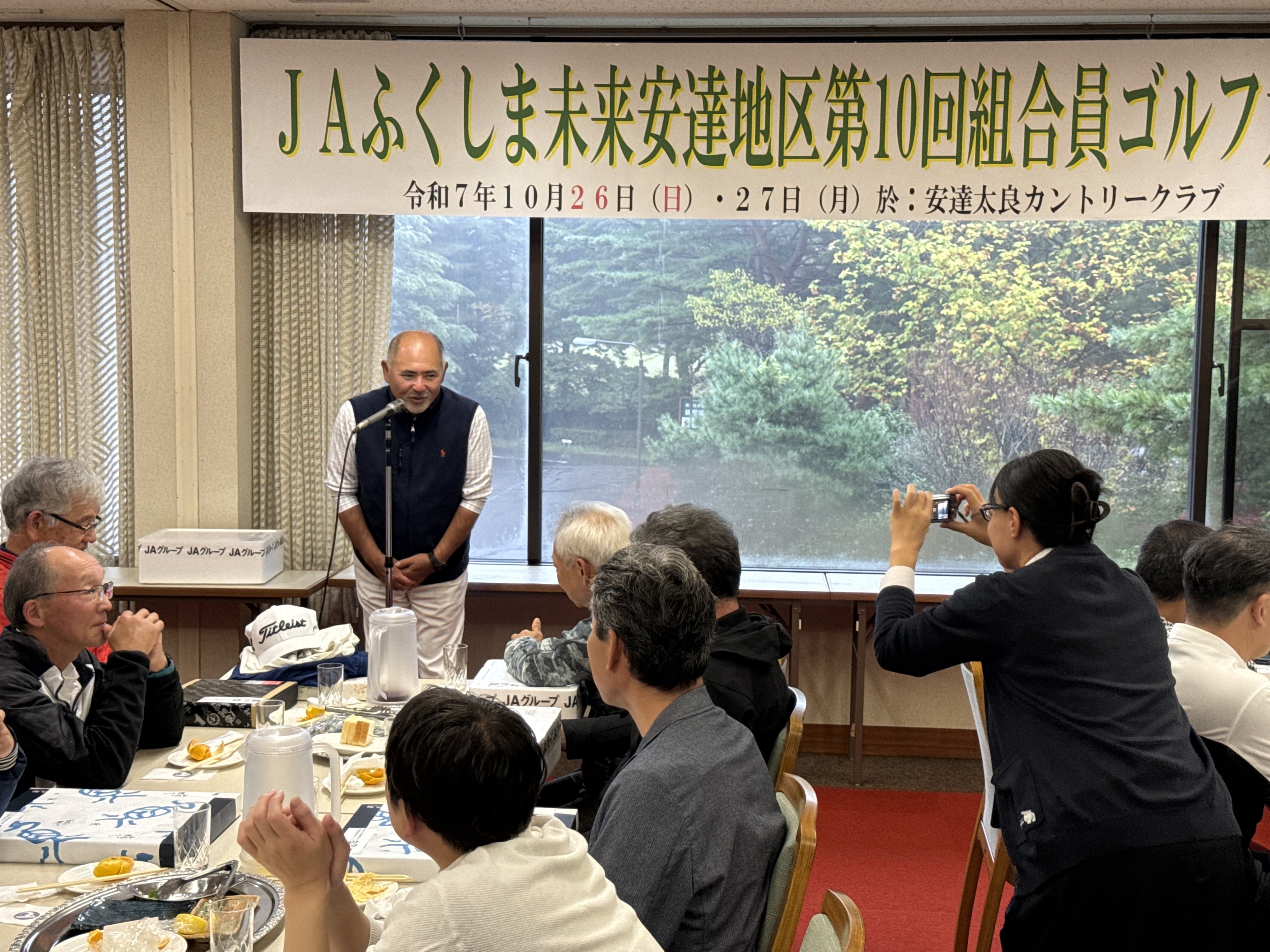 当JA安達地区本部は26日から2日間、管内組合員及びJA利用者・関係者の健康増進と親睦を深める事を目的に、二本松市の安達太良カントリークラブで第10回組合員ゴルフ大会を開きました。2日間で組合員・JA利用者240人が参加しました。組合員や地域の皆さまの生活意識・価値観に応え、地域の各組織と連携しながら多岐にわたり地域社会の活性化に取り組みます。