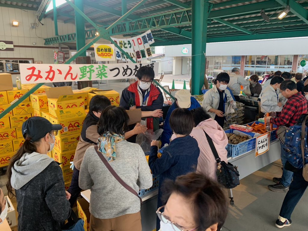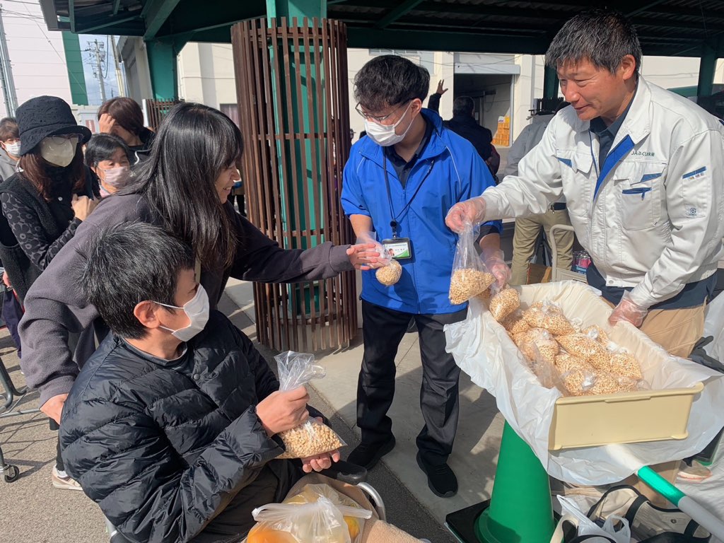 当日は「みかんと野菜のつめ放題」や「米すくい放題」など、地域の皆さんが楽しめるイベントが盛りだくさん。米粉プリンやポン菓子の無料ふるまいも行われ、会場は家族連れなどでにぎわいました。