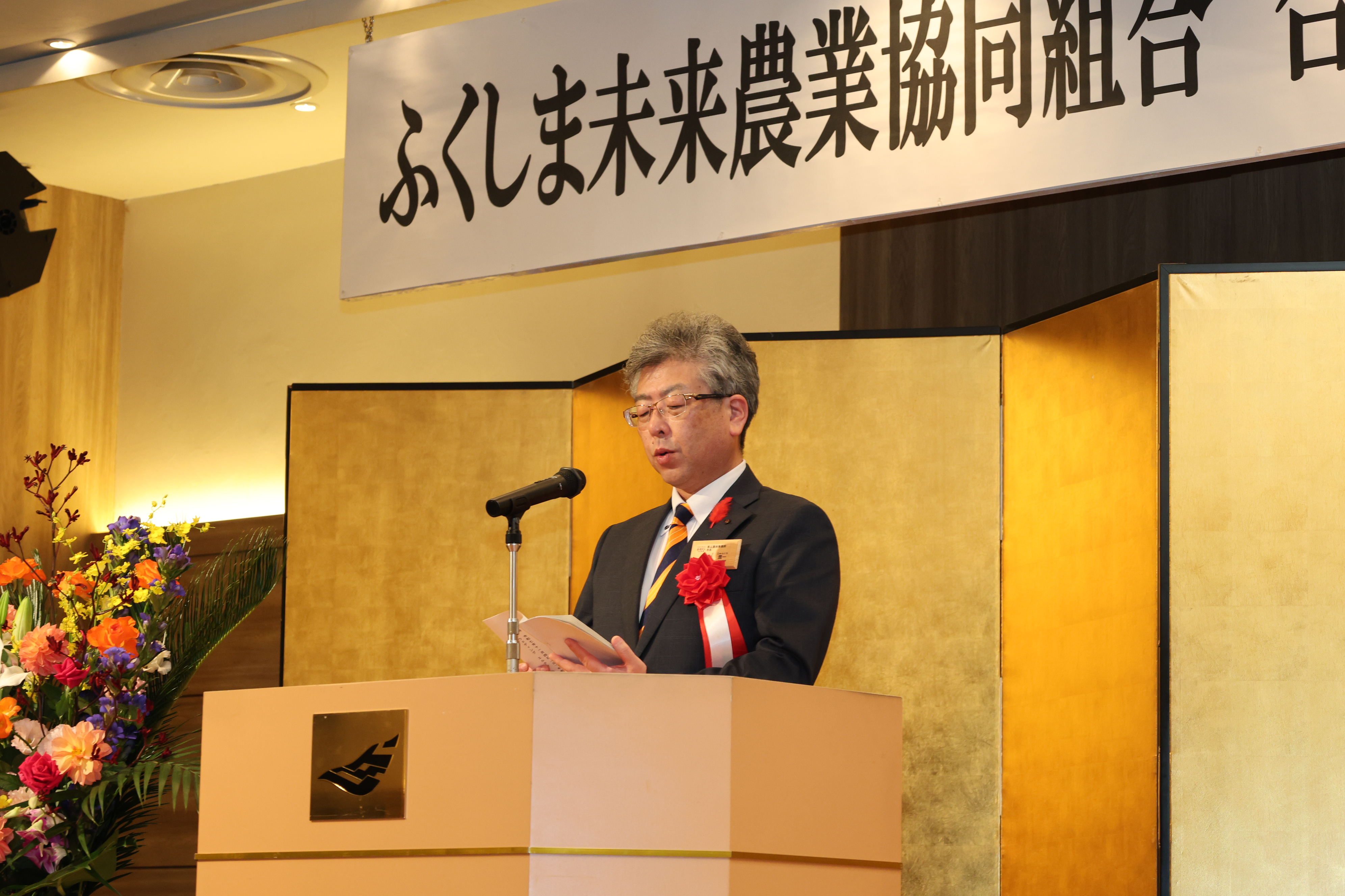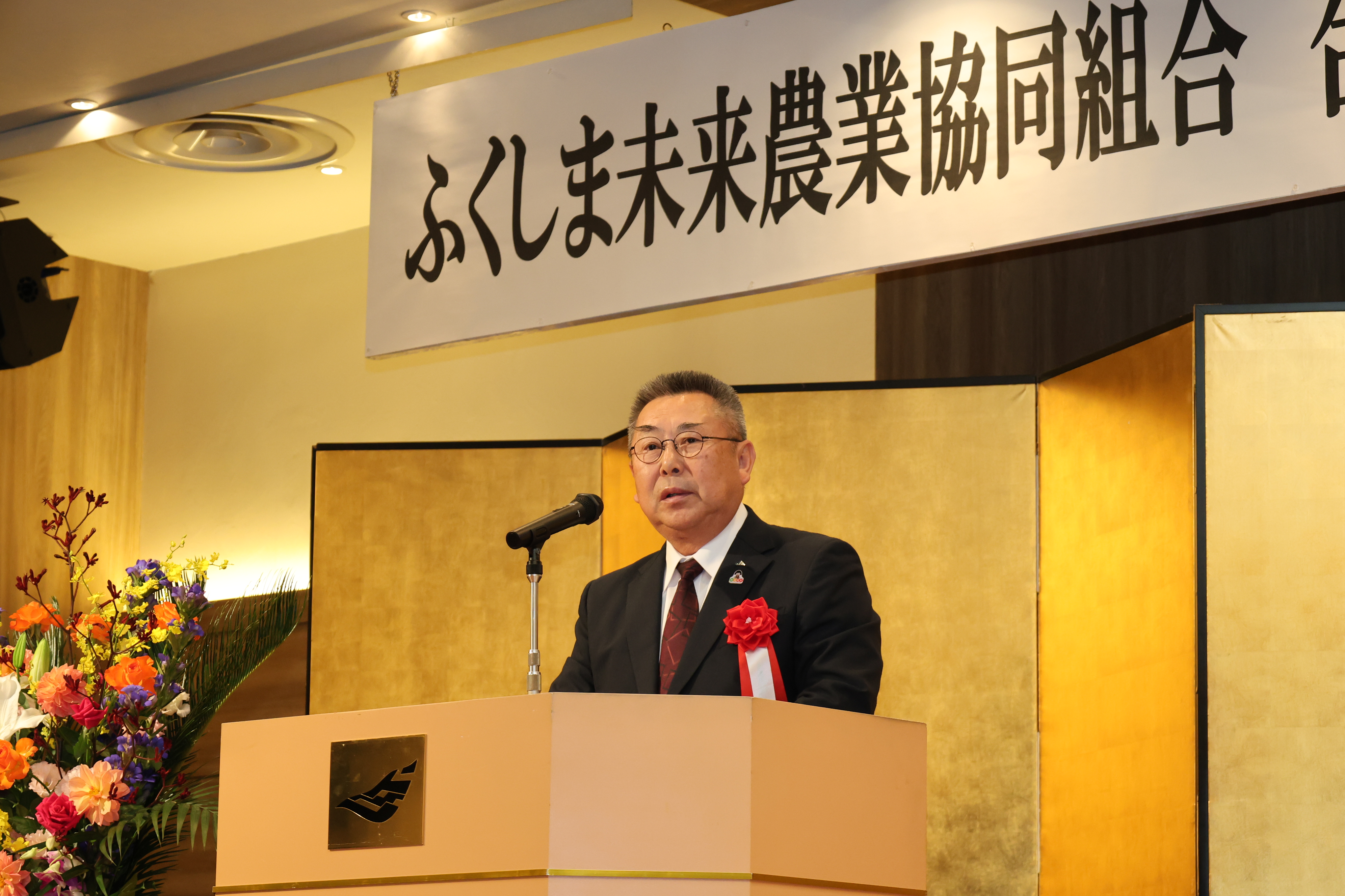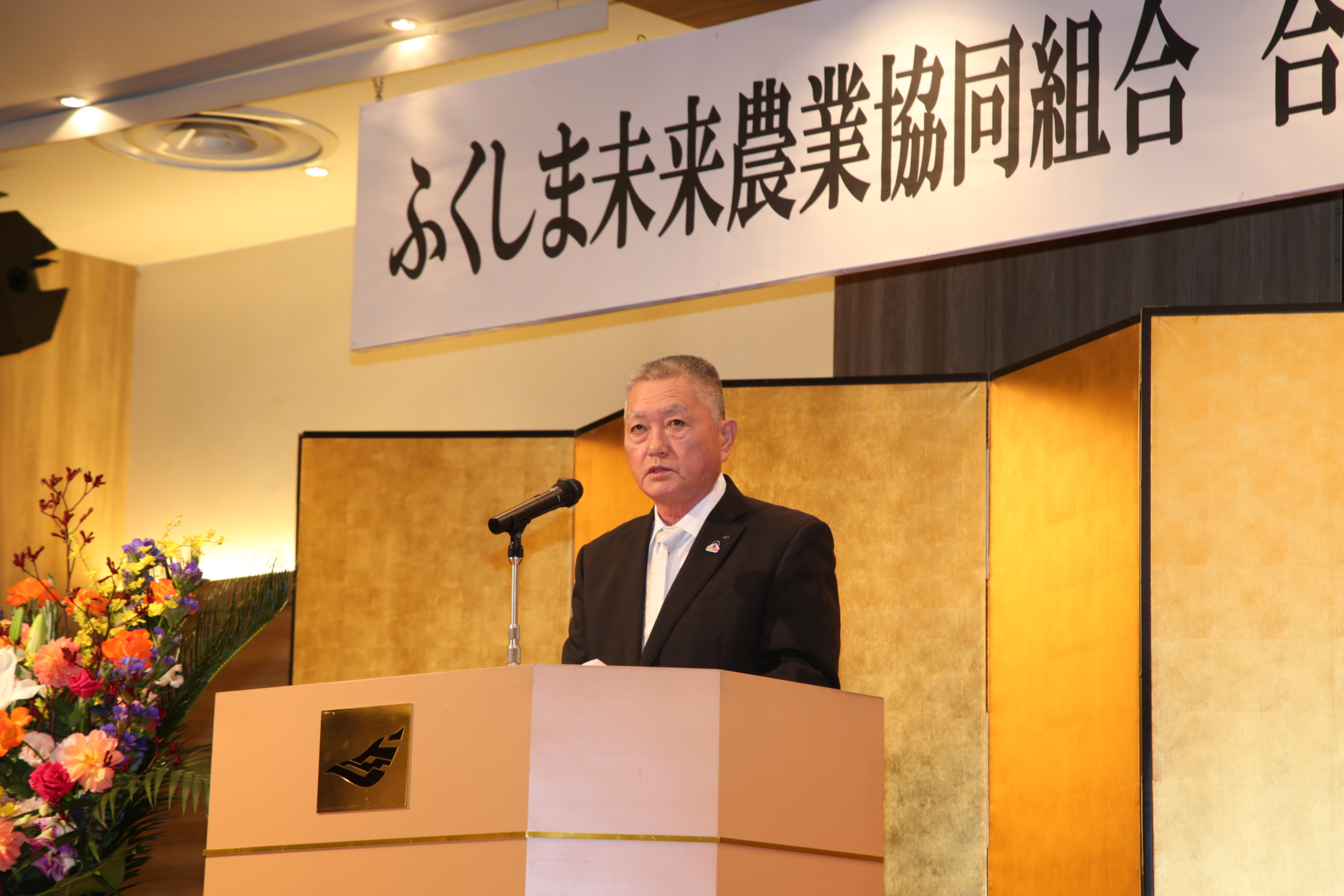 三津間一八組合長は「JAがあってよかったと思ってもらえる存在であり続けるために、これからも皆さまと力を合わせてふくしま未来を築いていきたい」と式辞を述べました。