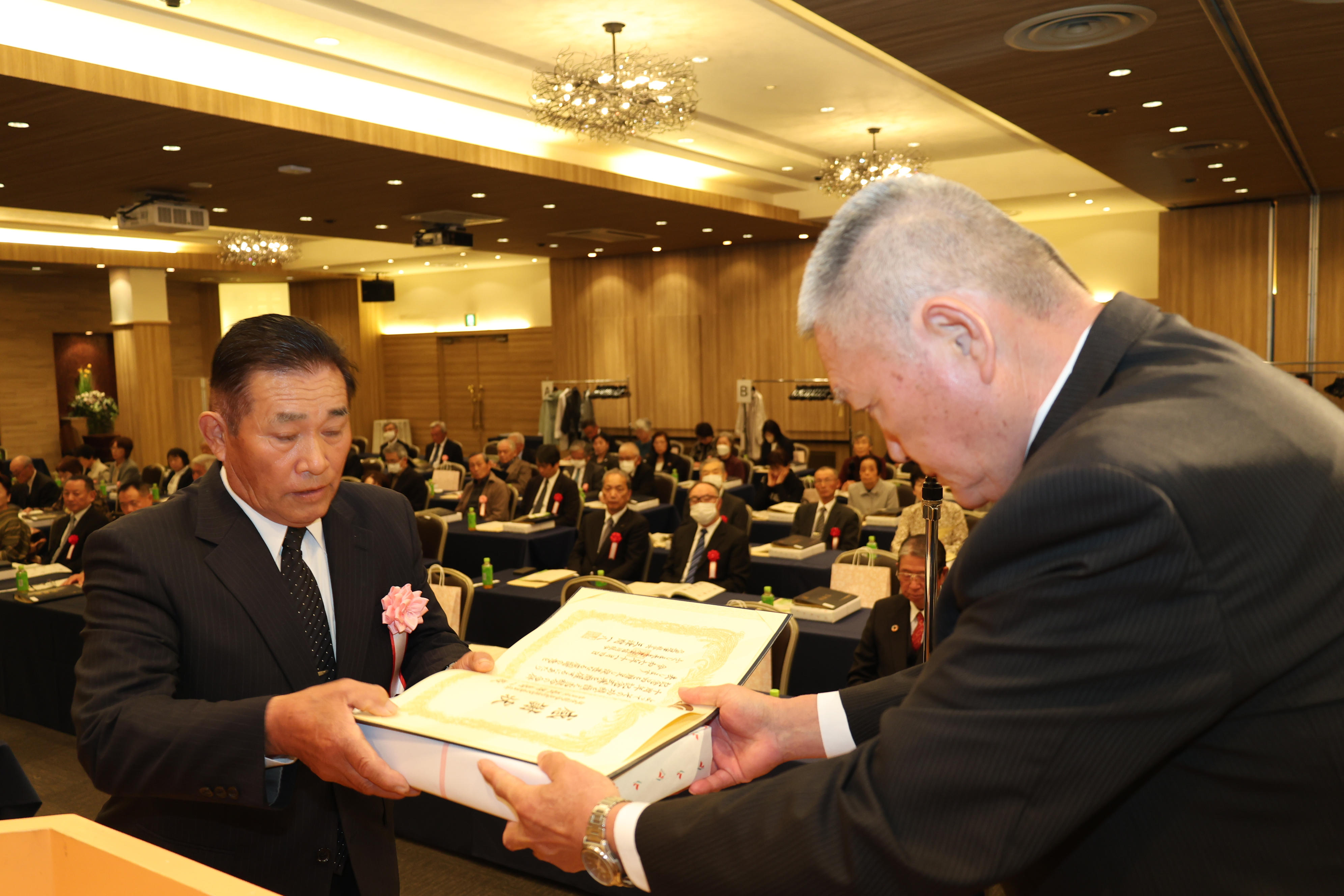また、組織の運営や発展に尽力した退任役員や功労者163人を表彰。初代代表理事組合長の菅野孝志さんら5人が代表して感謝状と記念品を受け取りました。