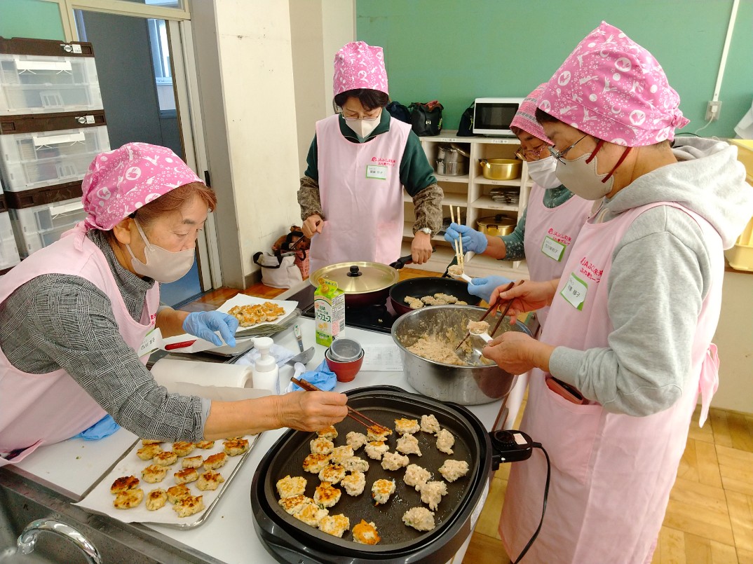 当JA女性部月舘総合支部ボランティアグループゆりの会は5日、伊達市月舘町の旧小手小学校で開かれた元気が~い!?月舘実行委員会主催の75歳以上の1人くらし、2人くらしの高齢者を招いた「元気が~い!?月舘」に調理ボランティアとして部員10人が参加しました。