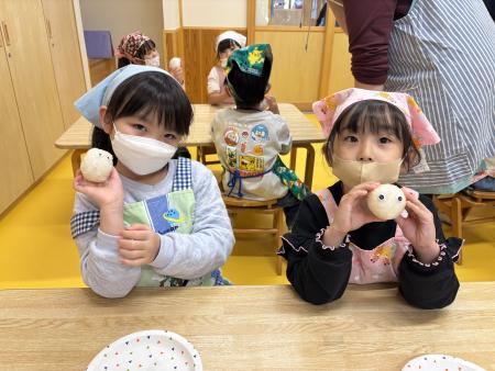 収穫祭では、お米本来の味をしっかり感じてもらおうと、塩おにぎり作りに挑戦。園児たちは「かわいくて食べられない!」と自分で握ったおにぎりを友達と見せ合いながら、笑顔で味わった。参加した園児からは「毎日食べるごはんよりとってもおいしい。自分で育てたお米でおにぎり作れてうれしい」と笑顔で話した。