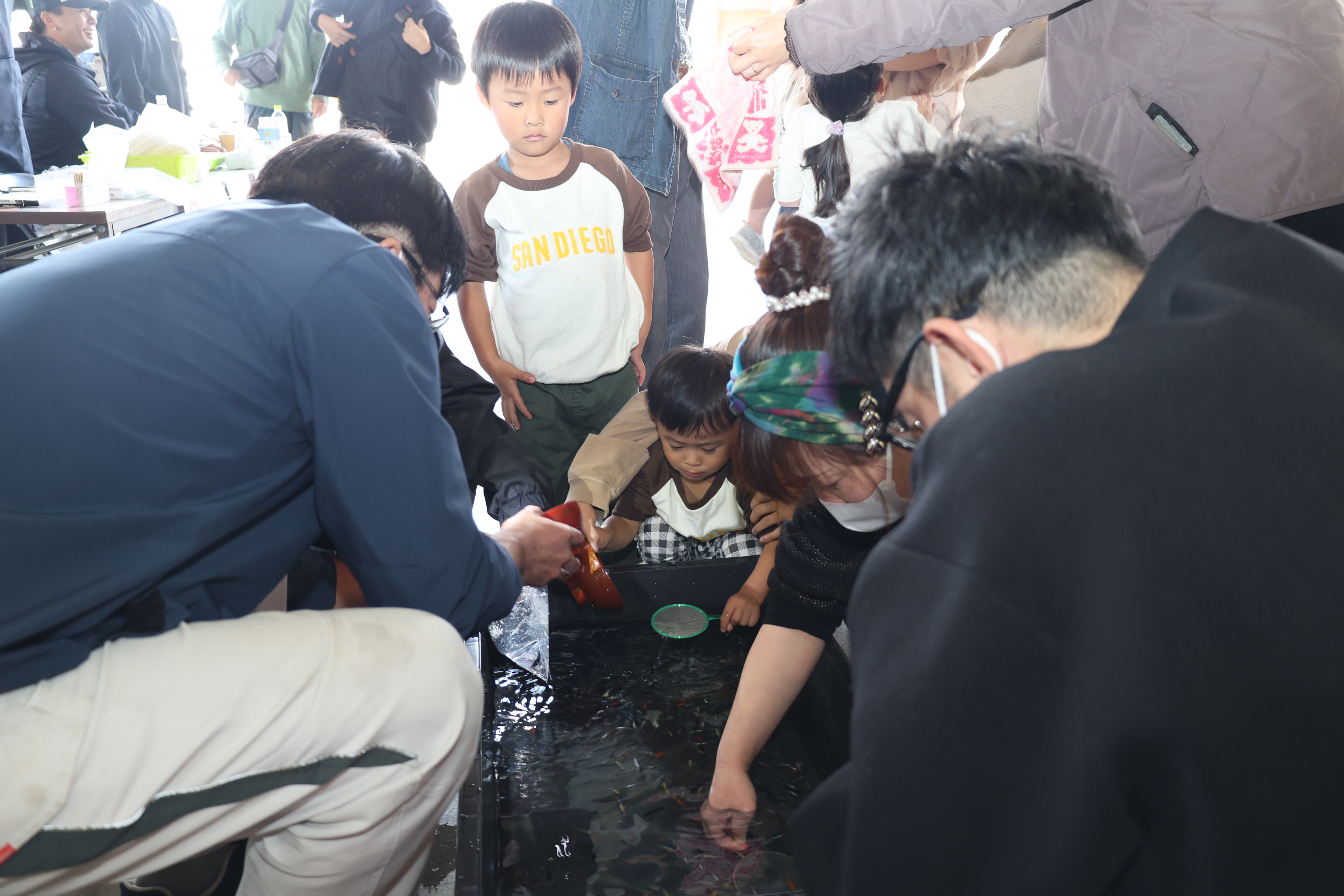 11月1日には、北信支店で開催。開会式で福島地区の末永喜広役員代表は「日頃の感謝を込めて盛大にまつりを行いたい」とあいさつし、テープカットを行いました。会場では、地元の生産者から事前に集めたリンゴの大きさを競う「ビックリりんごコンテスト」や「りんご皮むきゲーム」など参加型のイベントを開催。女性部員による玉こんにゃくや白玉団子の販売、フレッシュミズによるめだかすくい、北信農業後継者会によるフランクフルトや餃子の販売、味噌すくいなども行われ、多くの来場者でにぎわいました。また、10月25日に開かれた福島南支店のふれあいまつりでは、女性部によるバザーが行われました。