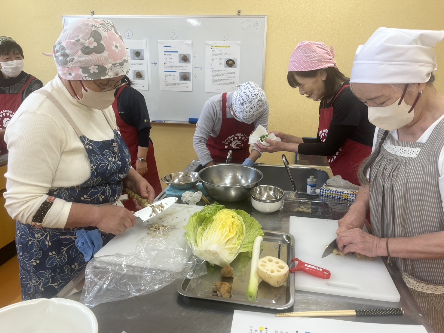 JA伊達地区地域支援課の職員が講師を務め、薬膳料理教室を開講。家の光の掲載記事を活用し、旬の食材を使ったレシピを作りました。「豚肉の獅子唐と白菜のピリ辛鍋」や「薬膳おむすび」、「薬膳ナムル」など5品を調理。どれも身体を整える栄養バランスの取れた、寒い季節にぴったりの料理となりました。