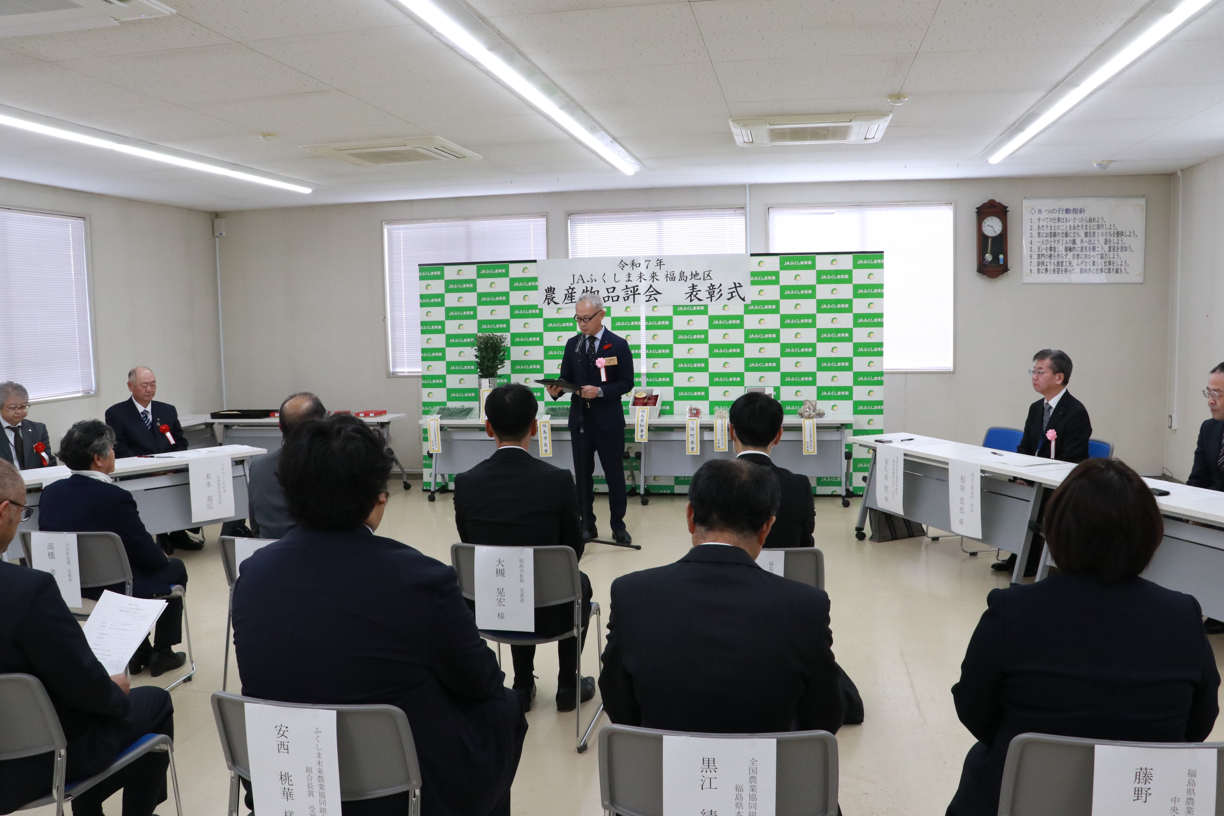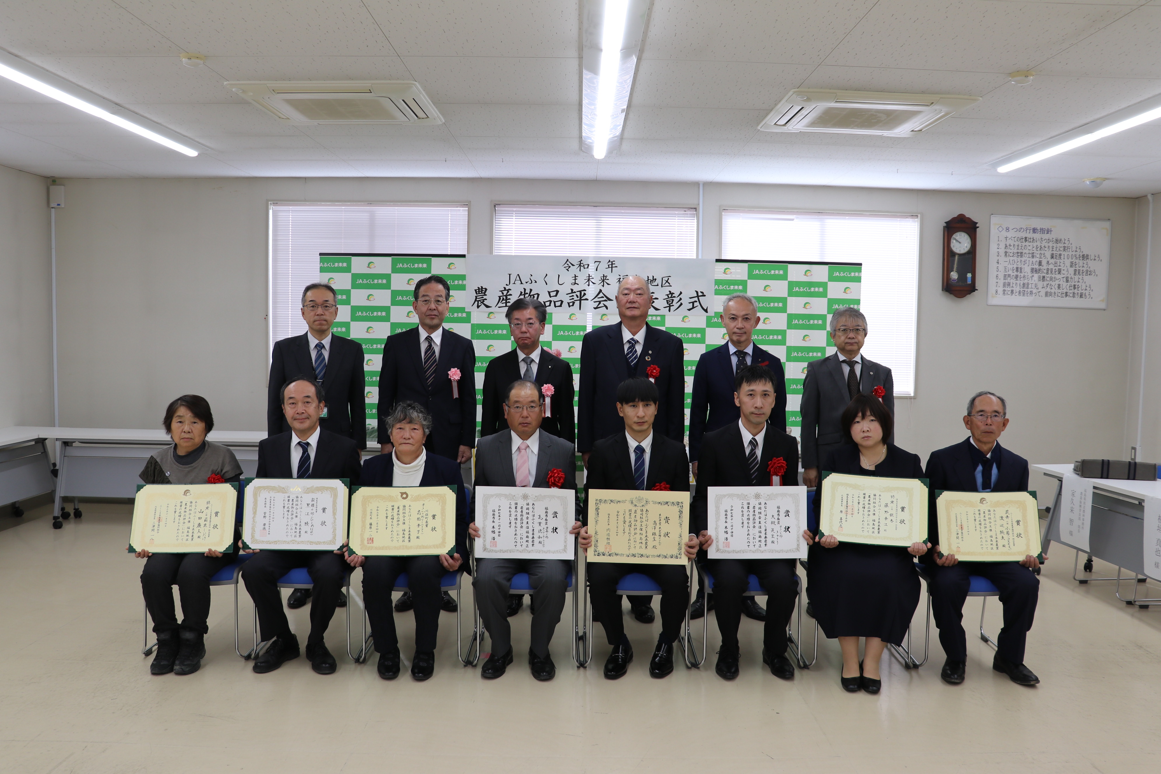 当JA福島地区は14日、2025年度農産物品評会表彰式を福島市のJA本店で開き、出品総数191点の中から48点の作物を選出しました。