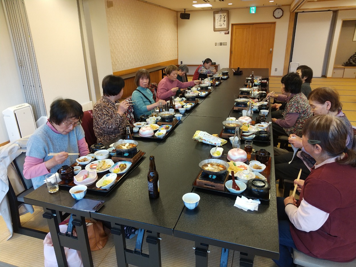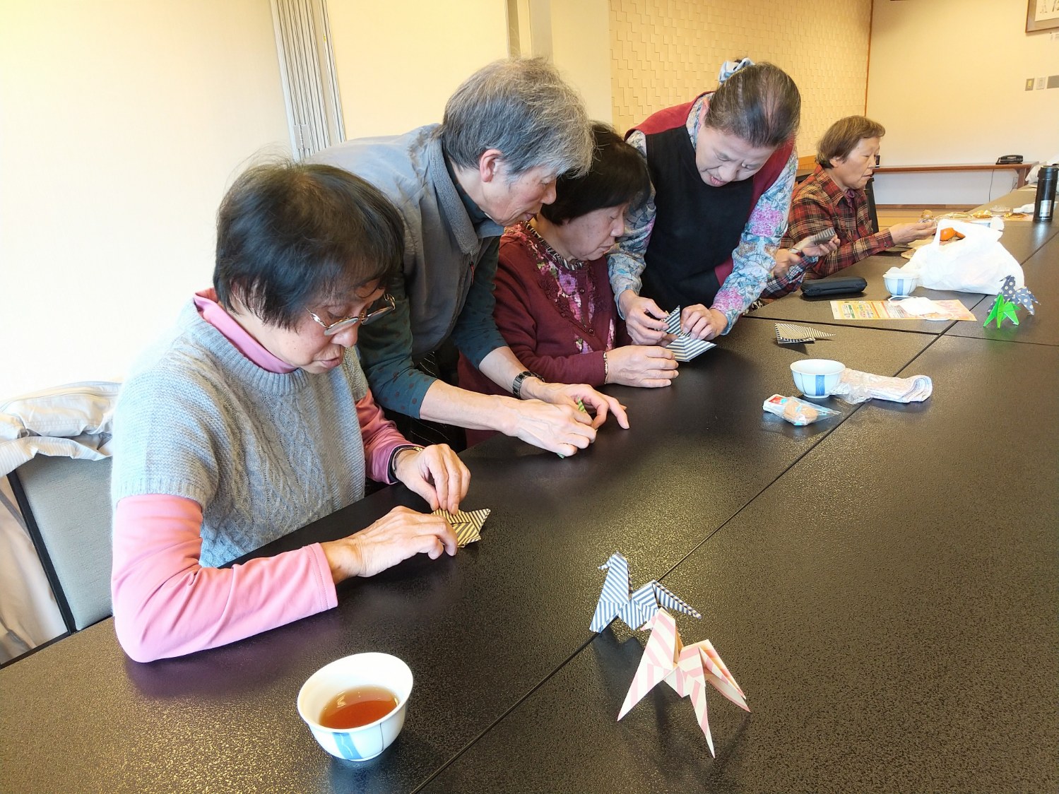 その後、折り紙で来年の干支「馬」を折り頭の体操をしました。窓から紅葉を眺めながらご膳を堪能し、入浴等で日頃の疲れを癒しました。参加者は「久しぶりにみんなとゆっくりできて楽しかった」と話しました。