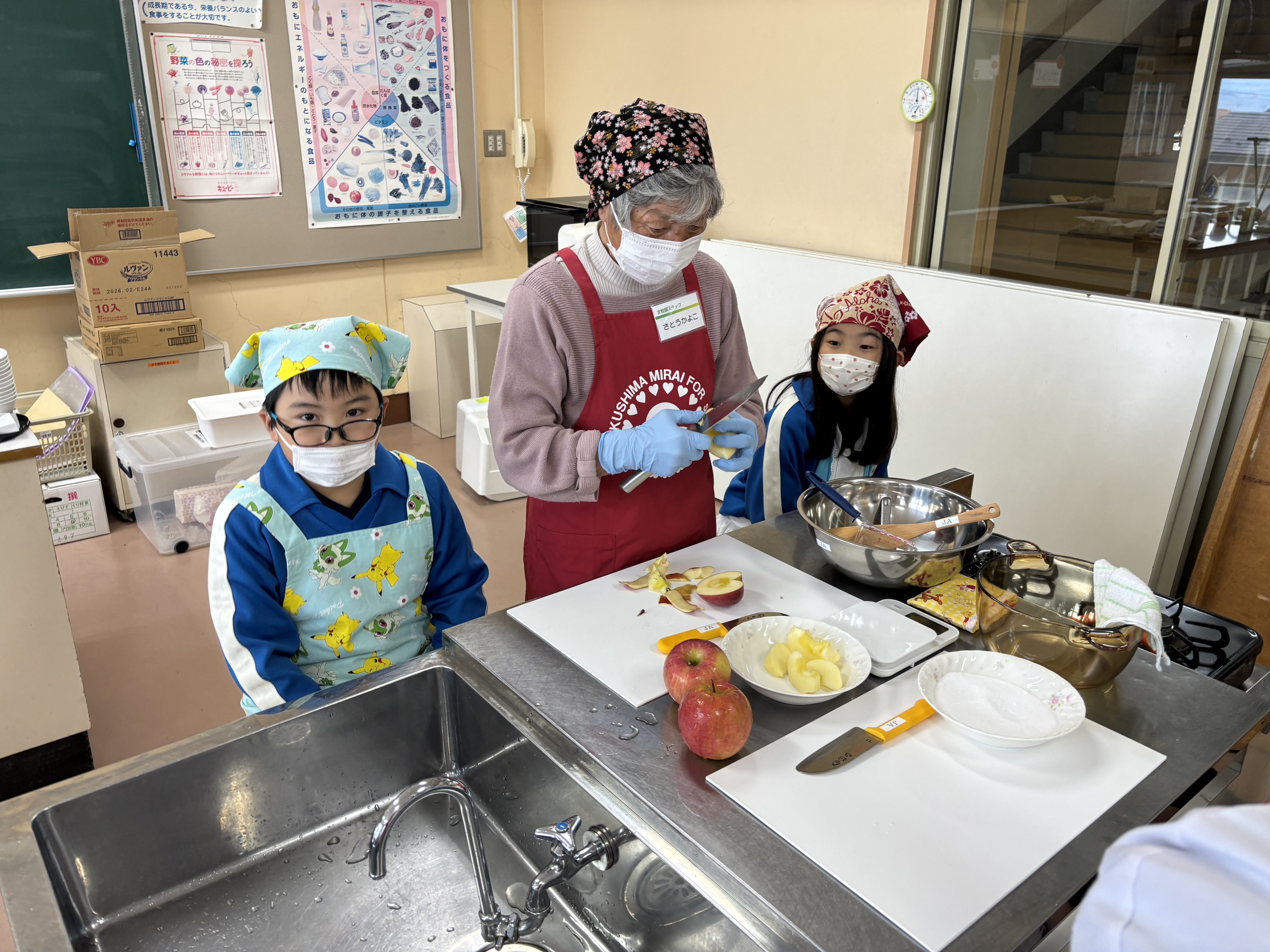 当JA伊達地区本部は26日、学校支援事業の一環として桑折町立醸芳小学校でりんごジャム作り体験教室を開き3年生が参加しました。