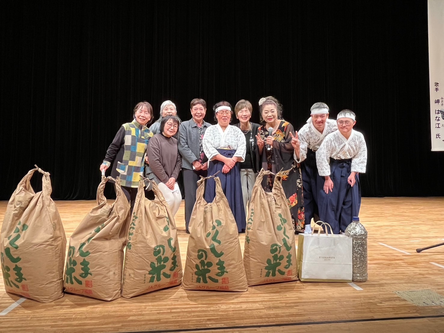 当JA女性部福島地区本部は27日、1年間で回収した空き缶のプルタブを渡す贈呈式を福島市で開きました。2024年12月から回収した45㌔(約9万個)を岬学園園長で歌手の岬はな江さんに手渡しました。