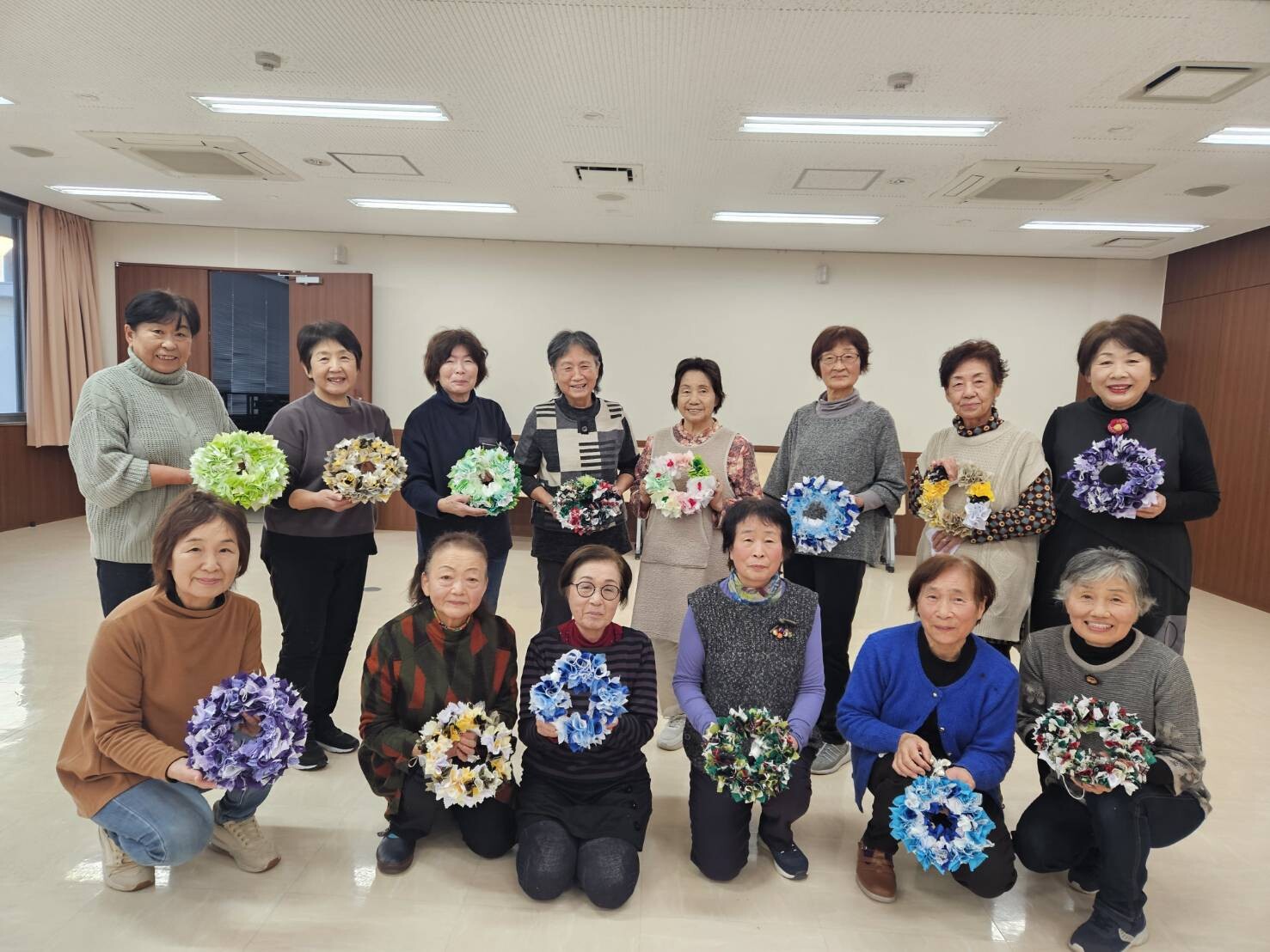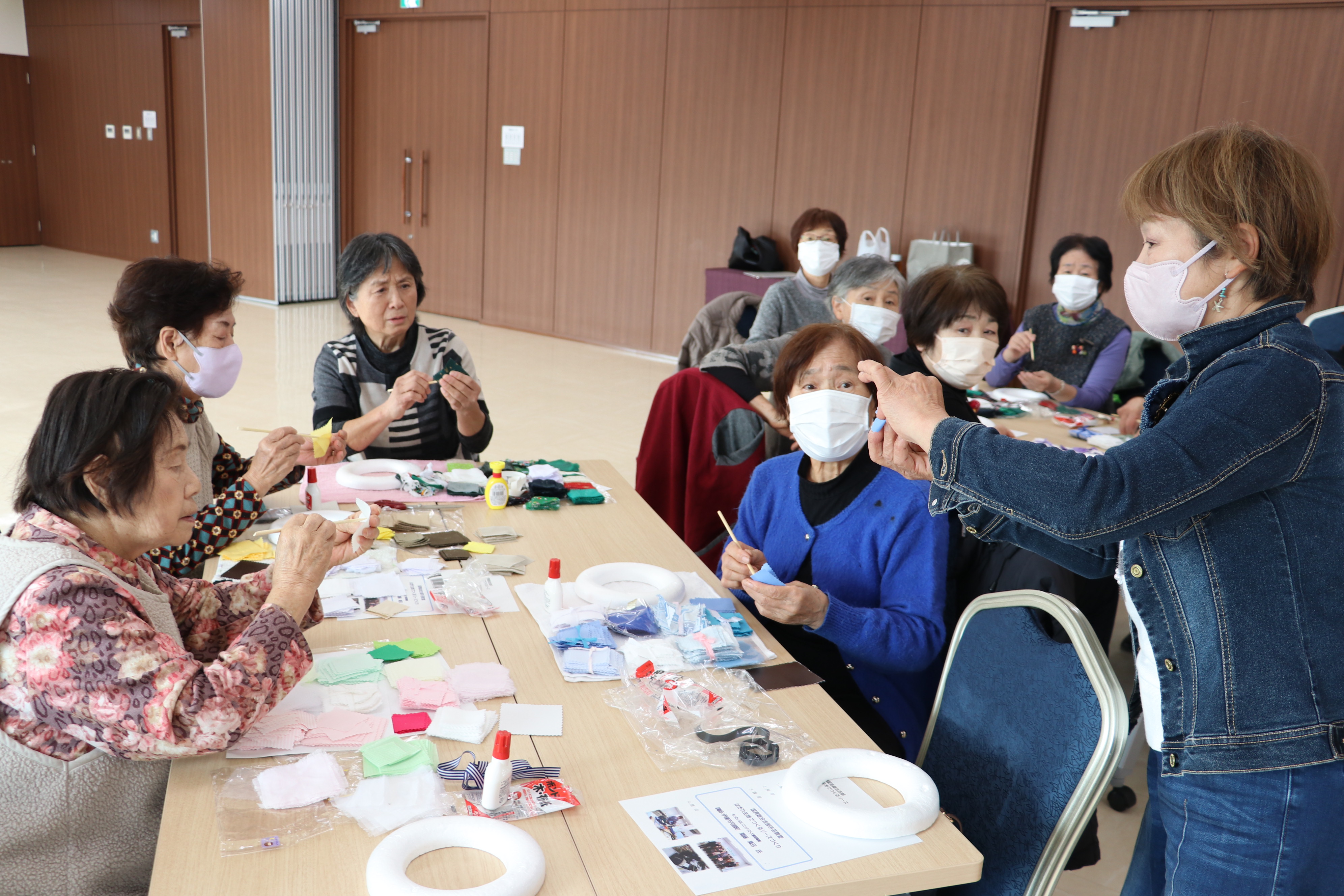 講師は、2024年度の「もったいないコンテスト」で大賞を受賞した伊達市月舘町の齋藤真弓さんが務めました。齋藤さんは、はぎれ布とドーナツ型の発泡スチロールを用意し、参加者は割りばしを使って好みの色の布でリースを仕上げました。参加者からは「同じ色でも個性が出て、正月飾りにも使えて部屋が華やかになる」と話しました。