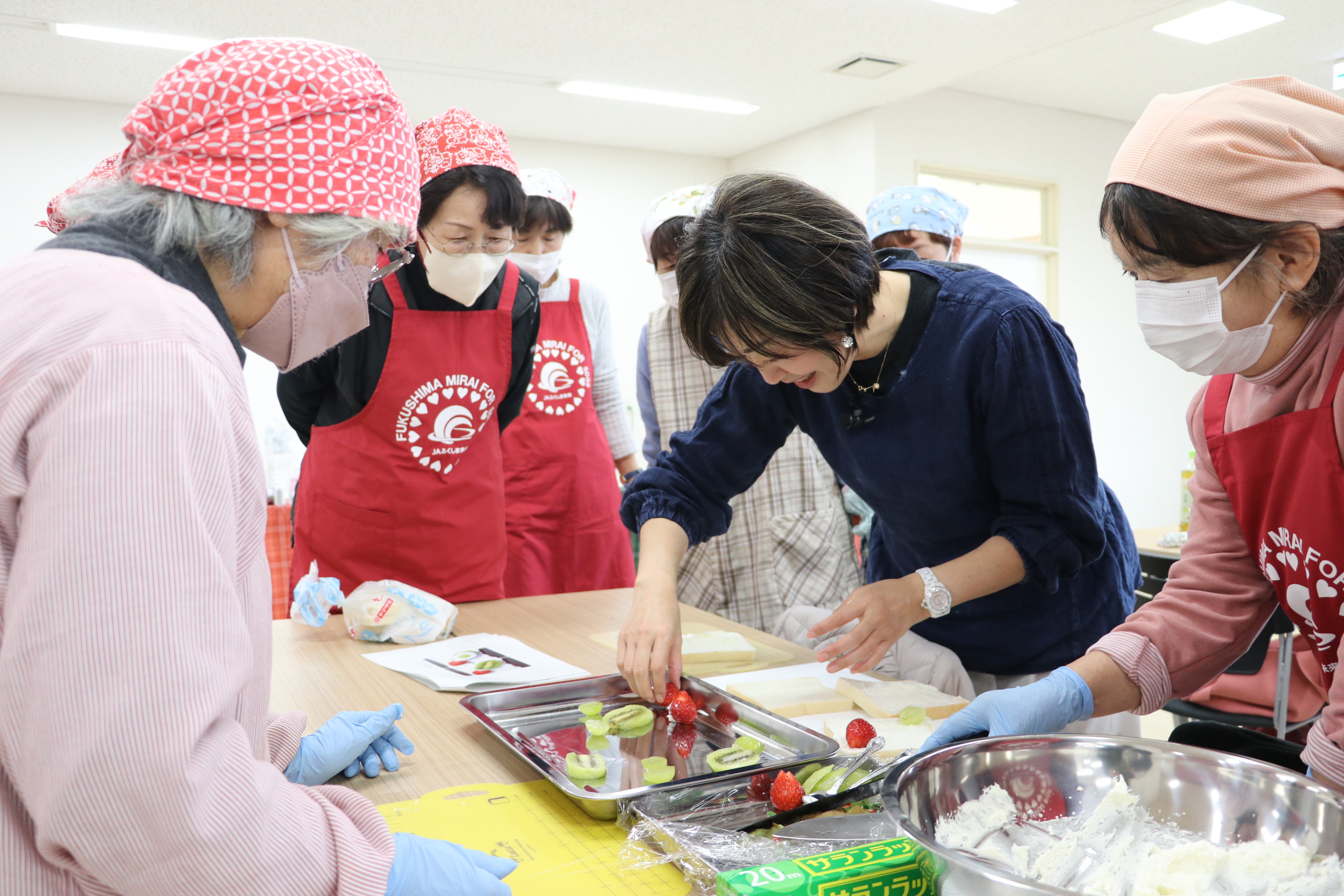 講座は料理研究家の中村美紀さんが地元食材を使った料理「雪降るシーザーサラダ」「ローストビーフ」「フルーツサンド」の3品を調理しました。受講者は「学んだことを違う料理でも活用していきたい」と話しました。同スクールは、毎年参加者が増加。来年度も開催を予定しています。