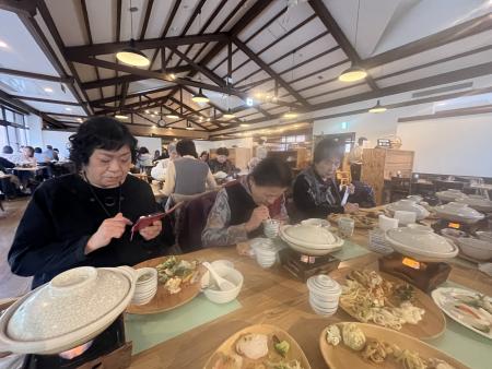 研修では、田村郡三春町にあるガーデンレストランサララを訪れ新鮮な旬野菜を贅沢に使った和食中心の自然食ビュッフェを堪能。食事後は、同食堂での地産地消を基軸としたメニュー内容やサービス、今後の運営について意見交換を行いました。また事務局からは食堂の運営目的や基本方針について説明がありました。部員は「今後も女性部のボランティア活動を通して生きがいや楽しみ、仲間作りの場となってほしい」と意気込みました。研修終了後に部員は「部員同士の交流の場となり良かった。意見交換をしながらさらに良い食堂となるようみんなで取り組んでいきたい」と話しました。