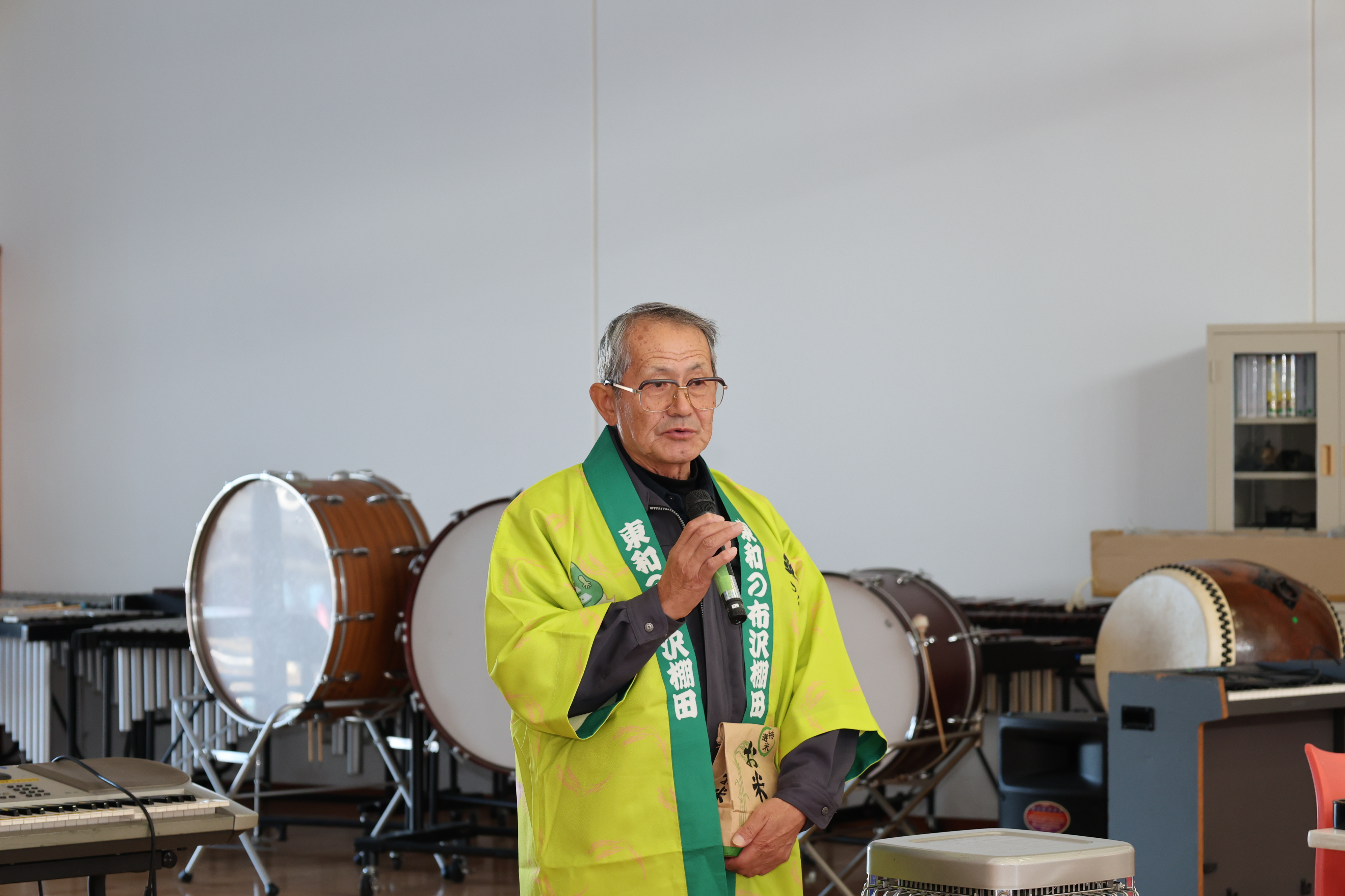 「田んぼの学校」は、食や農業、自然環境の大切さを学ぶ機会を子どもたちに提供する福島県の取り組みで、福島県県北農林事務所が主催しています。児童は国の「つなぐ棚田遺産」に認定されている同市の東和の布沢棚田で5月からもち米「こがねもち」を栽培し、9月に稲刈りを行いました。