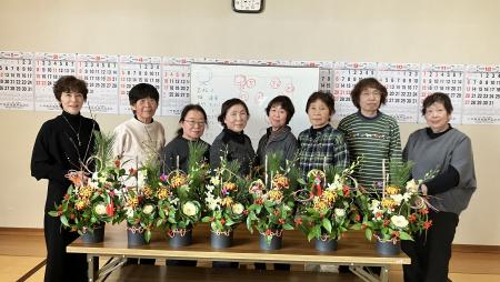 当JA女性部の保原支部、上保原支部、大田支部、柱沢支部は25日と26日、伊達市内で毎年恒例のフラワーアレンジメント教室を開きました。合わせて34人の部員が参加しました。講師には伊達市の生花店「花茂里」の盛藤さんを招きました。参加した部員は、花材のバランスを試行錯誤しながらオリジナルのお正月用アレンジメントを完成させました。
