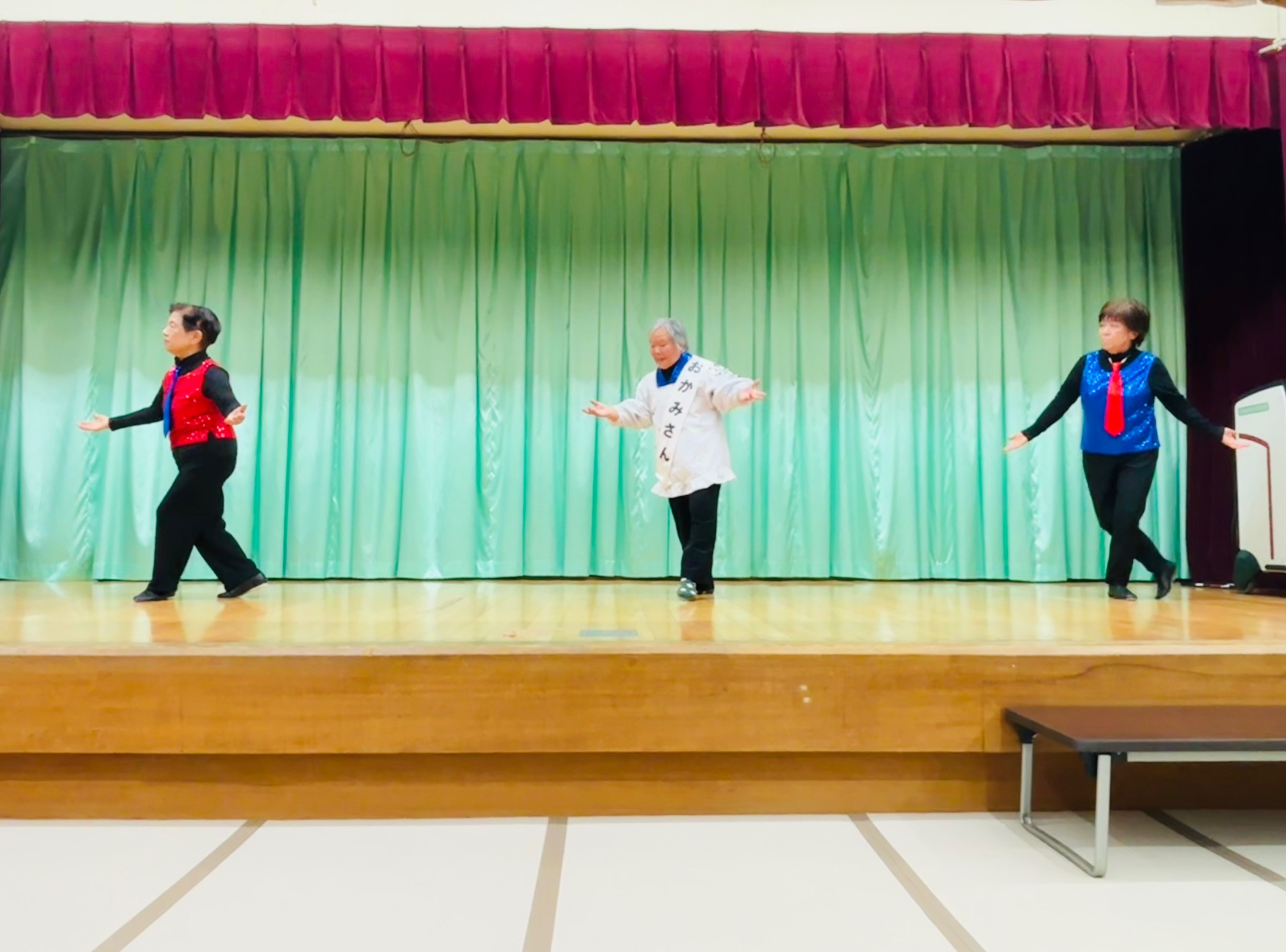 余興では、フラダンスや花笠音頭などの踊りが披露され、「だんな様」に合わせた盆踊りは会場全体を巻き込んで参加者全員で行いました。