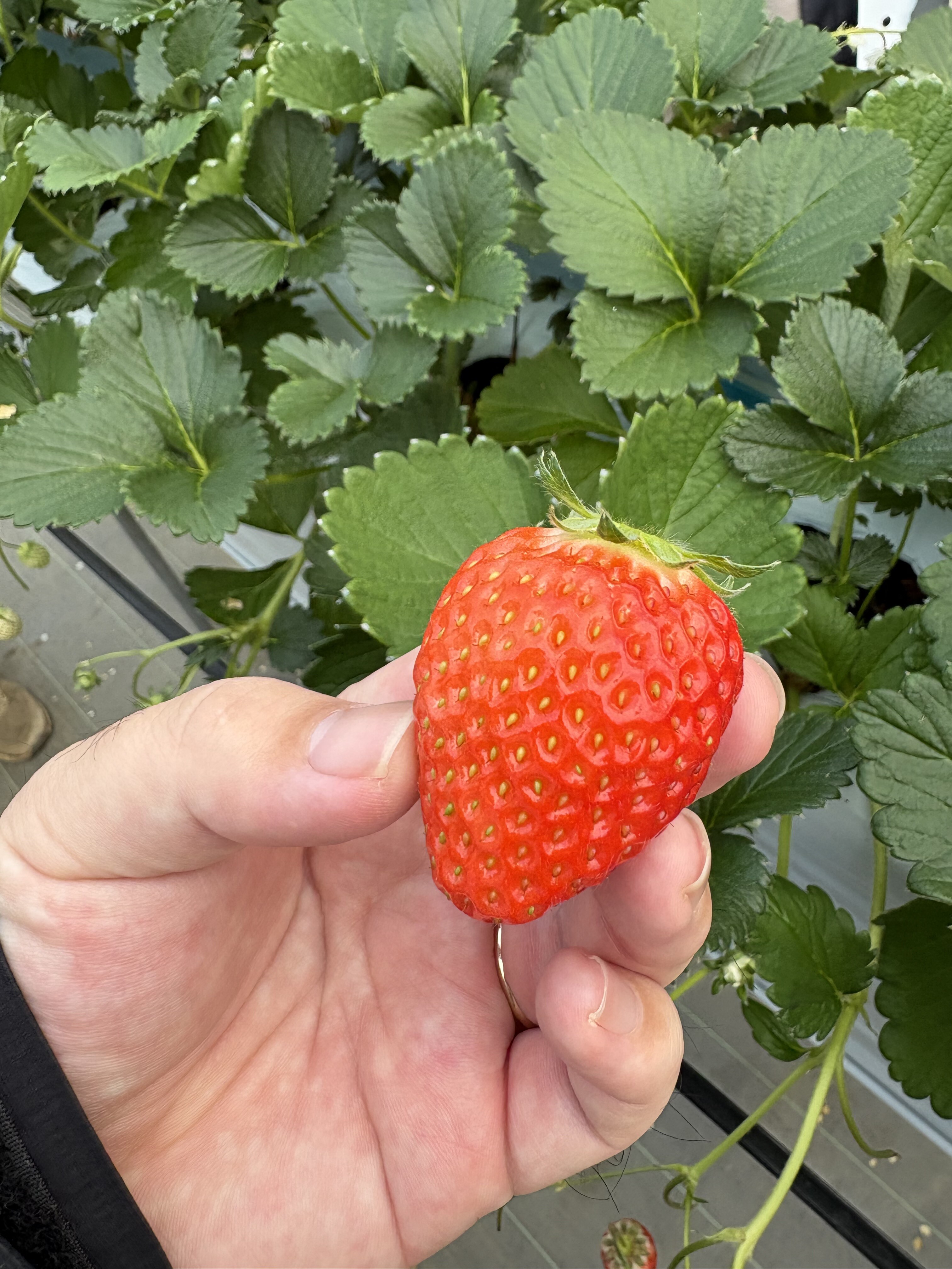 「ゆうやけベリー」の特徴についても解説があり、誕生の経緯や品種の特性を紹介。園主の神田さんは「ゆうやけベリーを栽培して4年目。毎年状態が違い、成功と失敗の連続だが、今年は状態が良い。イチゴは中休みがあるが、今の状態なら中休みなく収穫できそうで、収量増に期待している」と話しました。