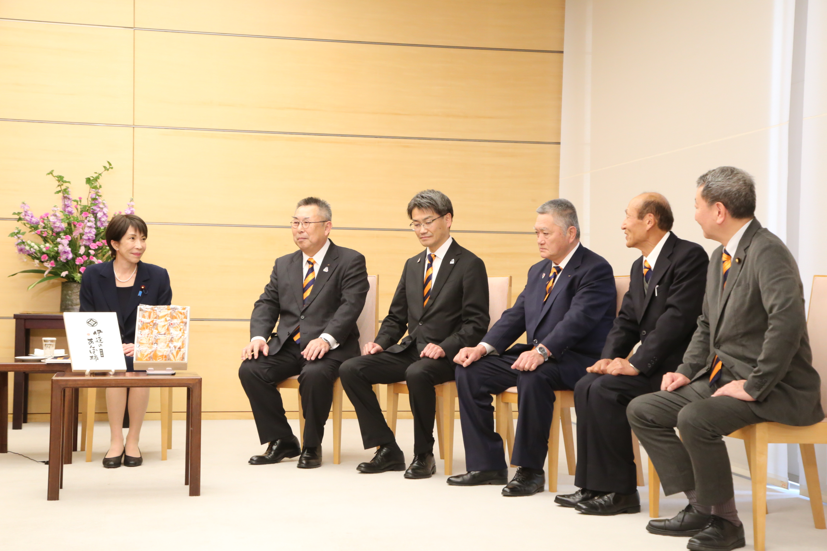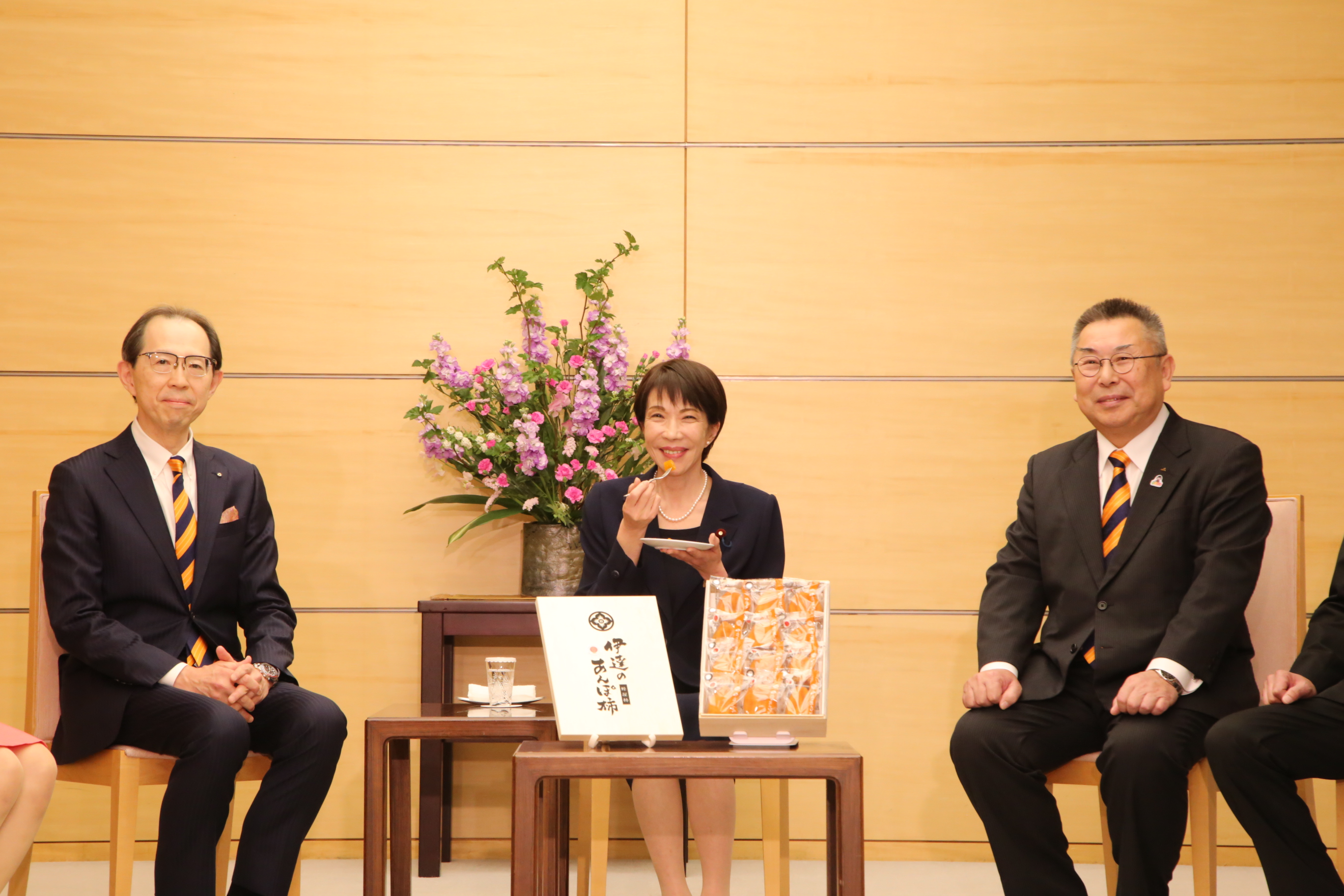 福島県と当JAは21日、高市早苗首相に「伊達のあんぽ柿」を贈呈しました。冬の味覚を代表する特産品を内堀雅雄福島県知事が首相に手渡しました。高市首相は「濃厚で甘い。トロっとしていておいしすぎる」と述べ、贈られたあんぽ柿を手に笑顔を見せました。