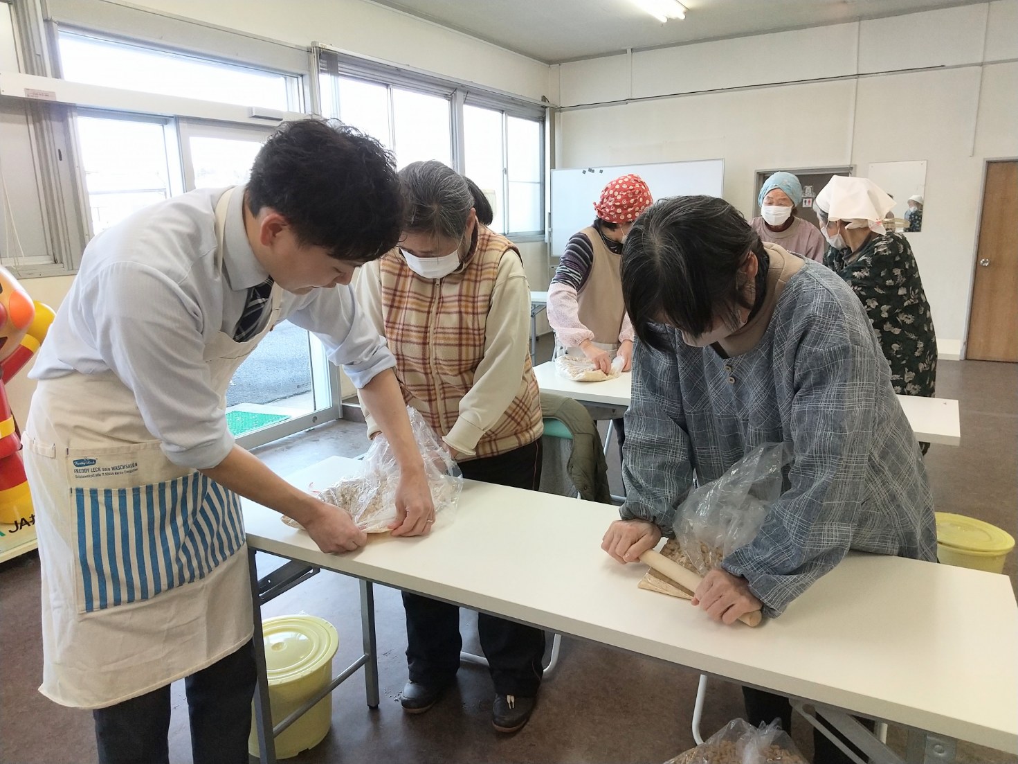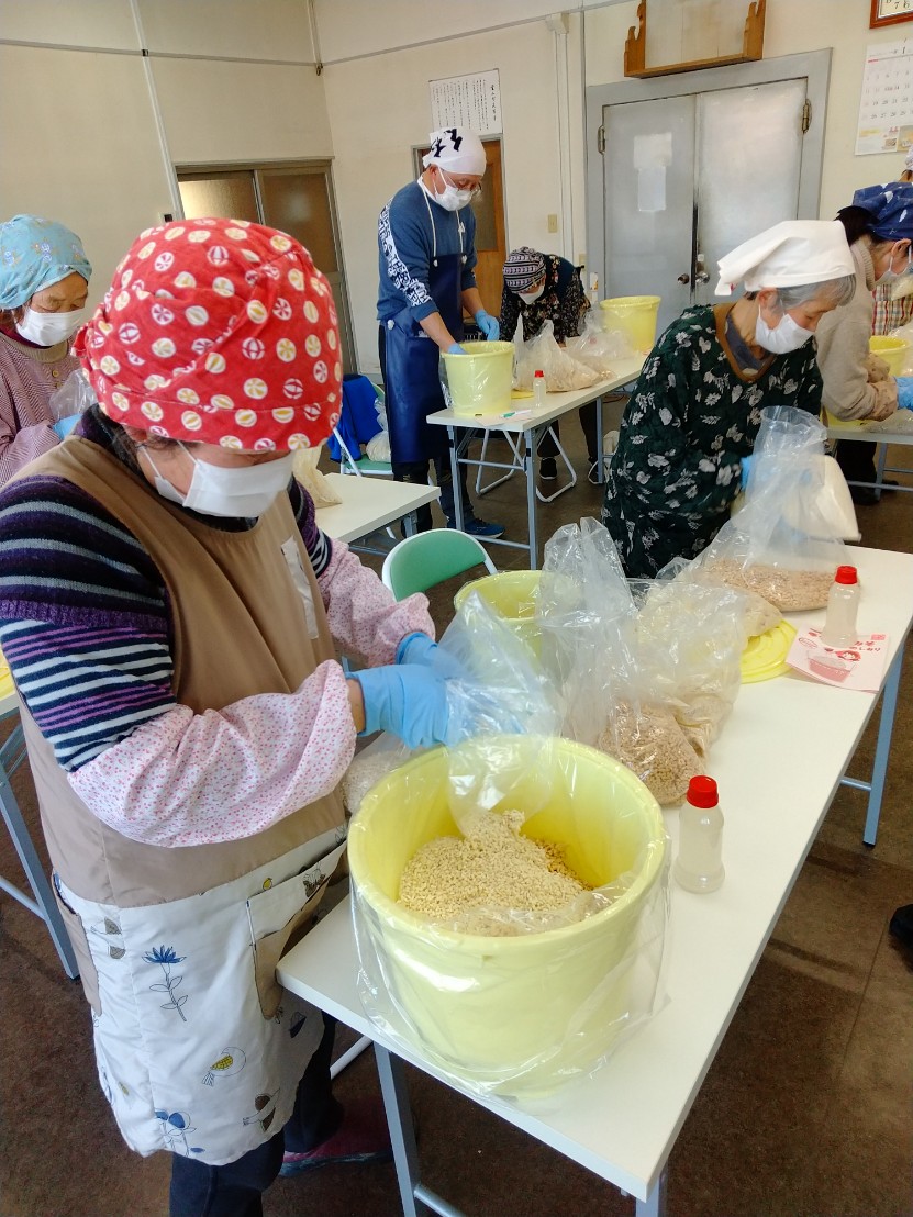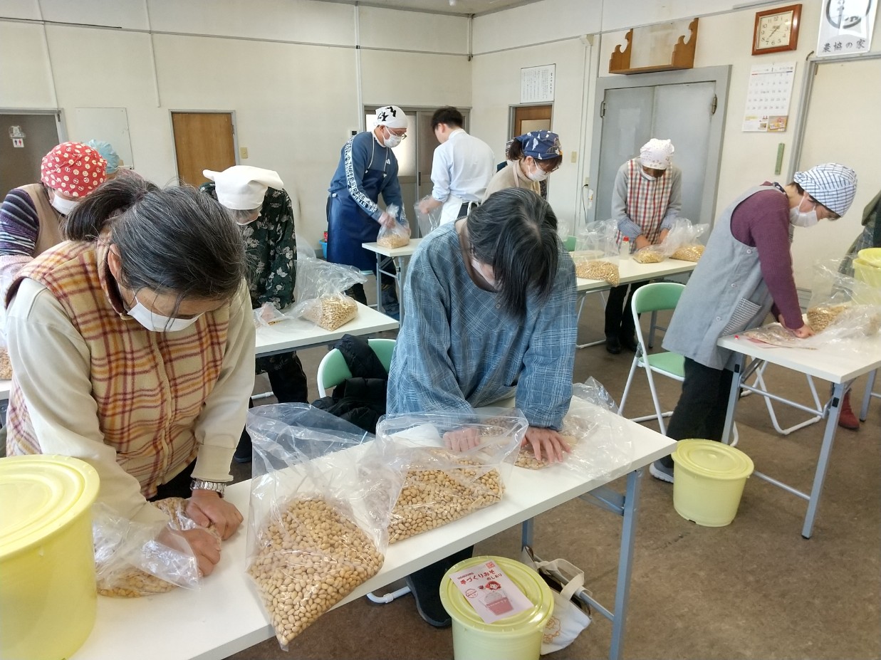 当JAは22日、伊達市の未来館おて・未来館おぐにでそれぞれ、よりそいサロン「みそ作り教室」を開き月舘町と霊山町内の組合員計23人が参加しました。