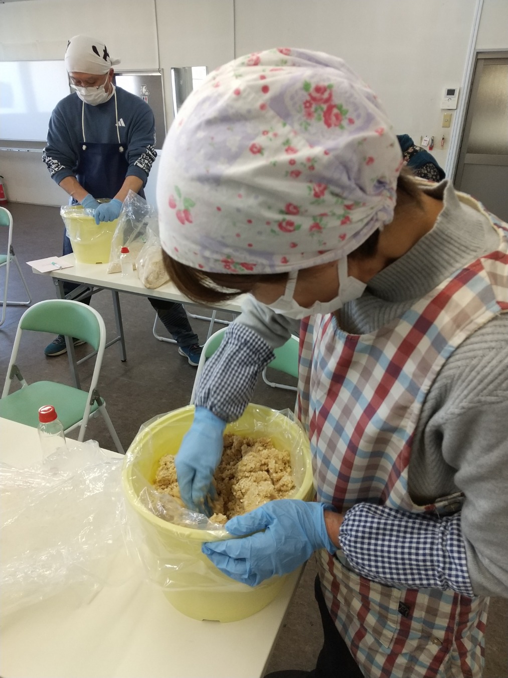 参加者は「昨年も参加して味噌がおいしかったので、今年も楽しみにしていた。秋の完成が待ち遠しい」と笑顔で話し、それぞれ大切に仕込んだみそを持ち帰りました。