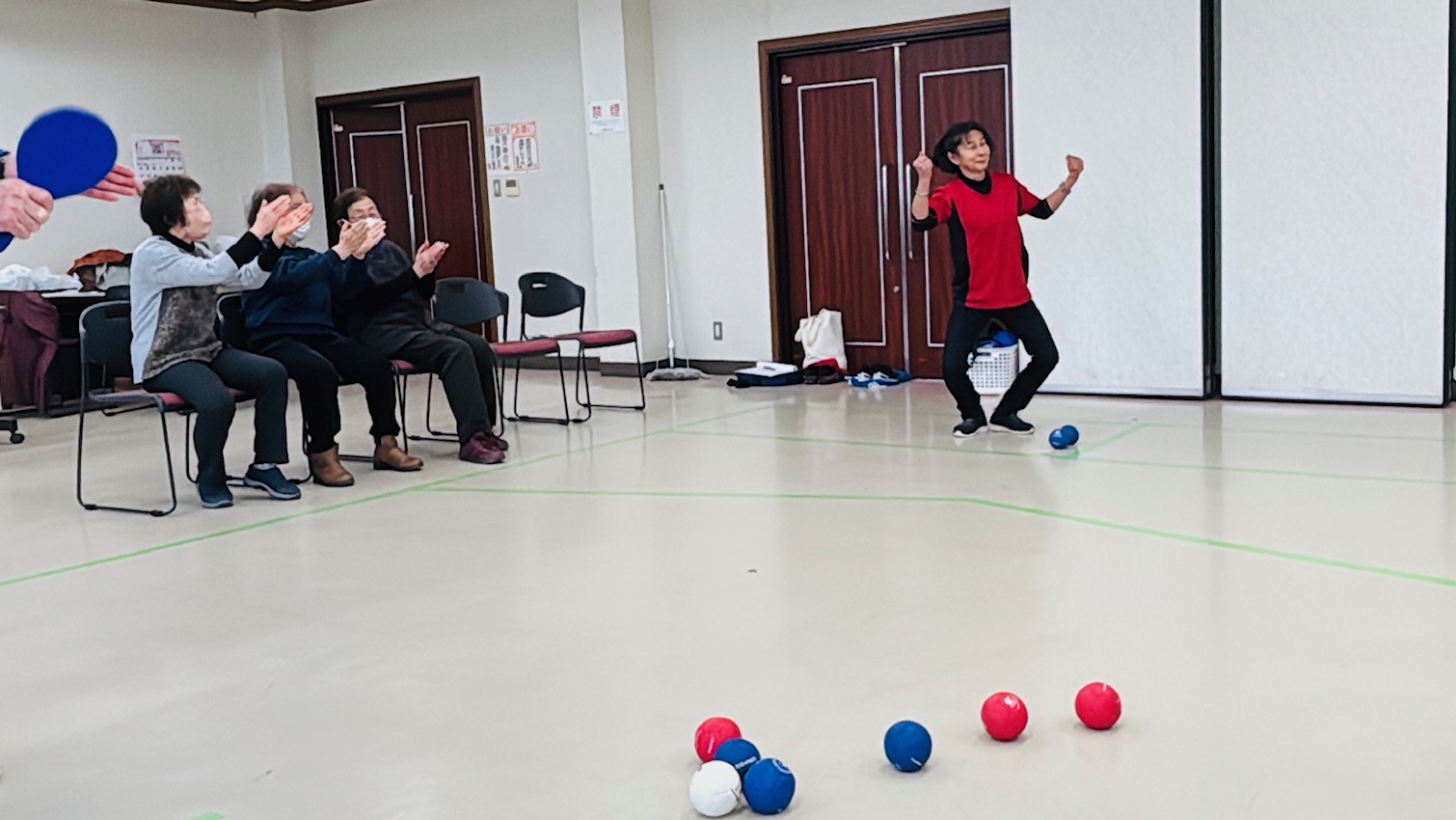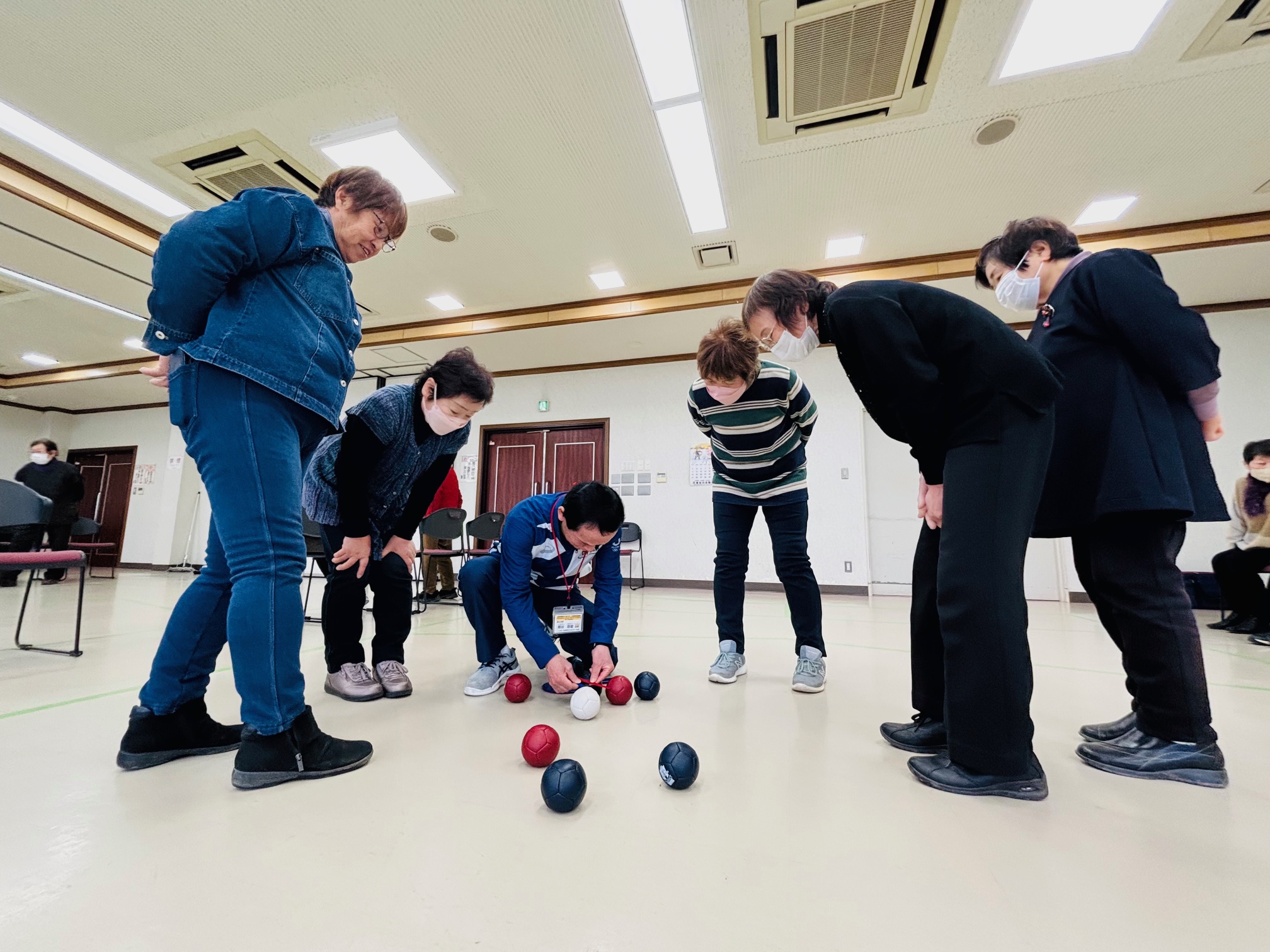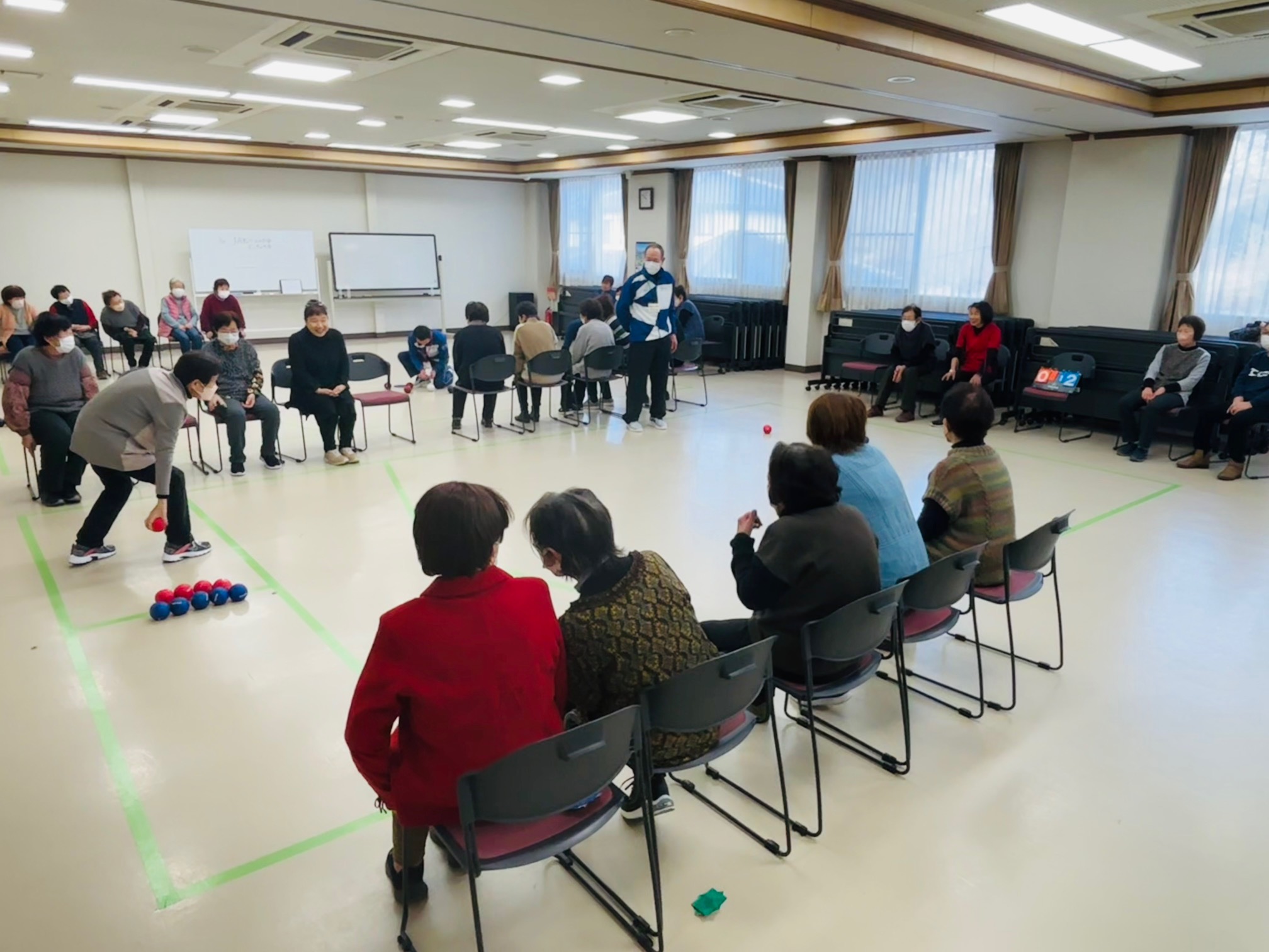 当JA女性部福島地区のエルダー部会「よつば会」は28日、福島市の松川支店でボッチャと新年会を行いました。新年初、そして本年度最後の活動です。会員27人が参加しました。