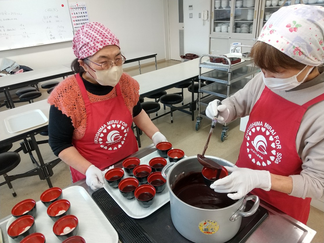当JA女性部霊山地区ボランティアグループ「よつば会」は29日、伊達市霊山町の霊山デイサービス(茶臼の里)で調理ボランティアを行い、会員3人が参加しました。