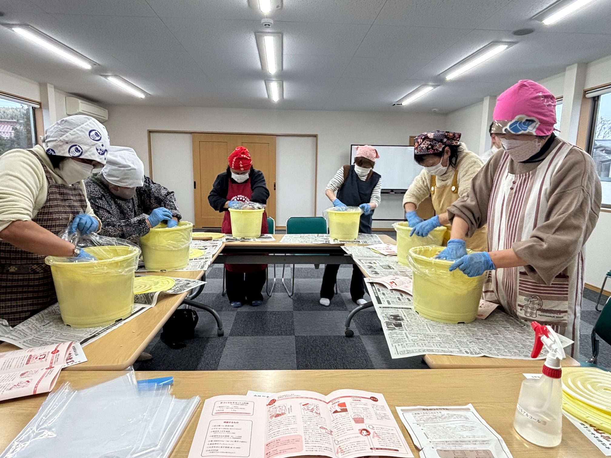 完成した味噌は、今後2回の天地返しを行いながら熟成させます。伊藤さんからは保存方法やカビ対策についても教えていただき、参加者からは「食べるのが楽しみ」との声が聞かれました。