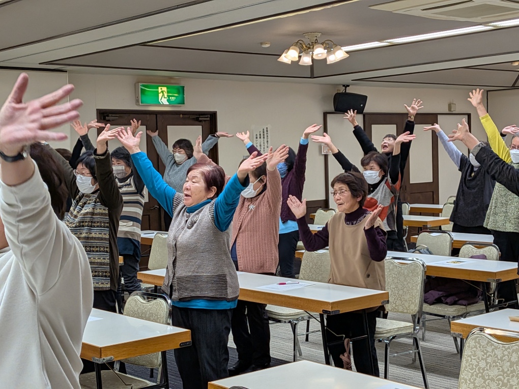 きらり健康生活協同組合 常務理事の渡部典美様が講師を務め「笑いヨガ」を体験しました。渡部さんは「インド発祥の呼吸法を取り入れた有酸素運動で、横隔膜を使いながら、笑うことで“幸せホルモン”が増える」と呼びかけました。参加者は「寒い福島を飛び出し、ハワイに行った気分でリフレッシュできた」と話しました。