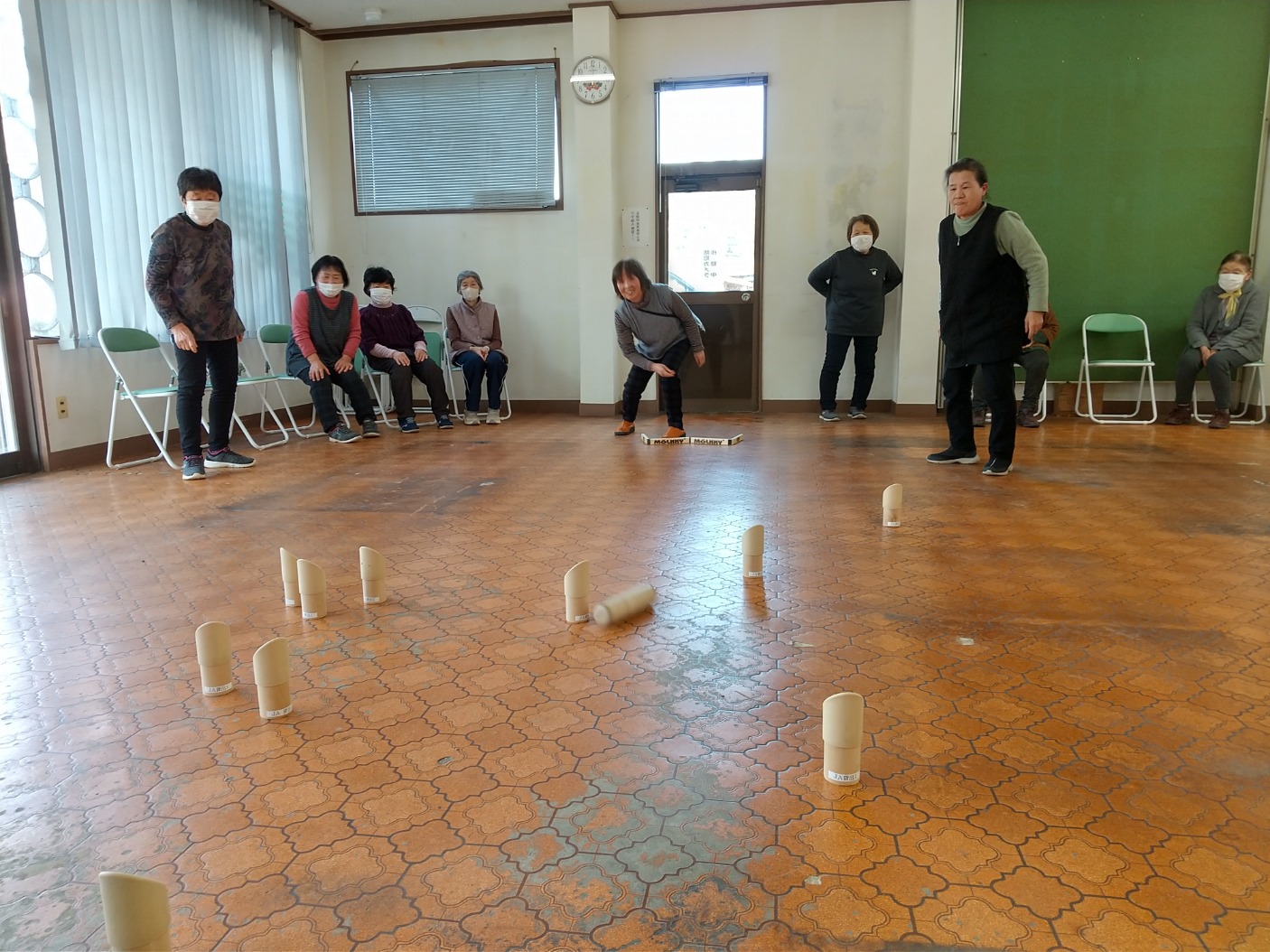 当JA女性部石戸支部は10日、未来館いしどでお茶会を開き、部員10人がニュースポーツの「モルック」を体験しました。ルールや投げ方について説明を受け、2班に分かれてゲームを行いました。モルックを12本のスキットルと呼ばれる木製のピンをめがけて投げ、50点ぴったりになるまで得点した方が勝ちになるルールです。倒したいスキットルを倒せると歓声を上げて喜びました。