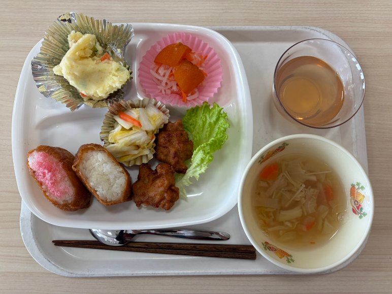 当JA女性部が運営するよりそい食堂☘りょうぜんが14日、みらいホールかけだで開かれました。メニューは節分にちなんで、五穀豊穣・金運アップの縁起物として食べられる「いなり寿司」をはじめ、からあげ、フードドライブで提供された野菜や果物を使ったポテトサラダ、かんぴょうときのこのスープ、あんぽ柿入りなます、リンゴゼリーなどです。74人が来場しました。この日はバレンタインデーで、来場者にチョコレートがプレゼントされました。