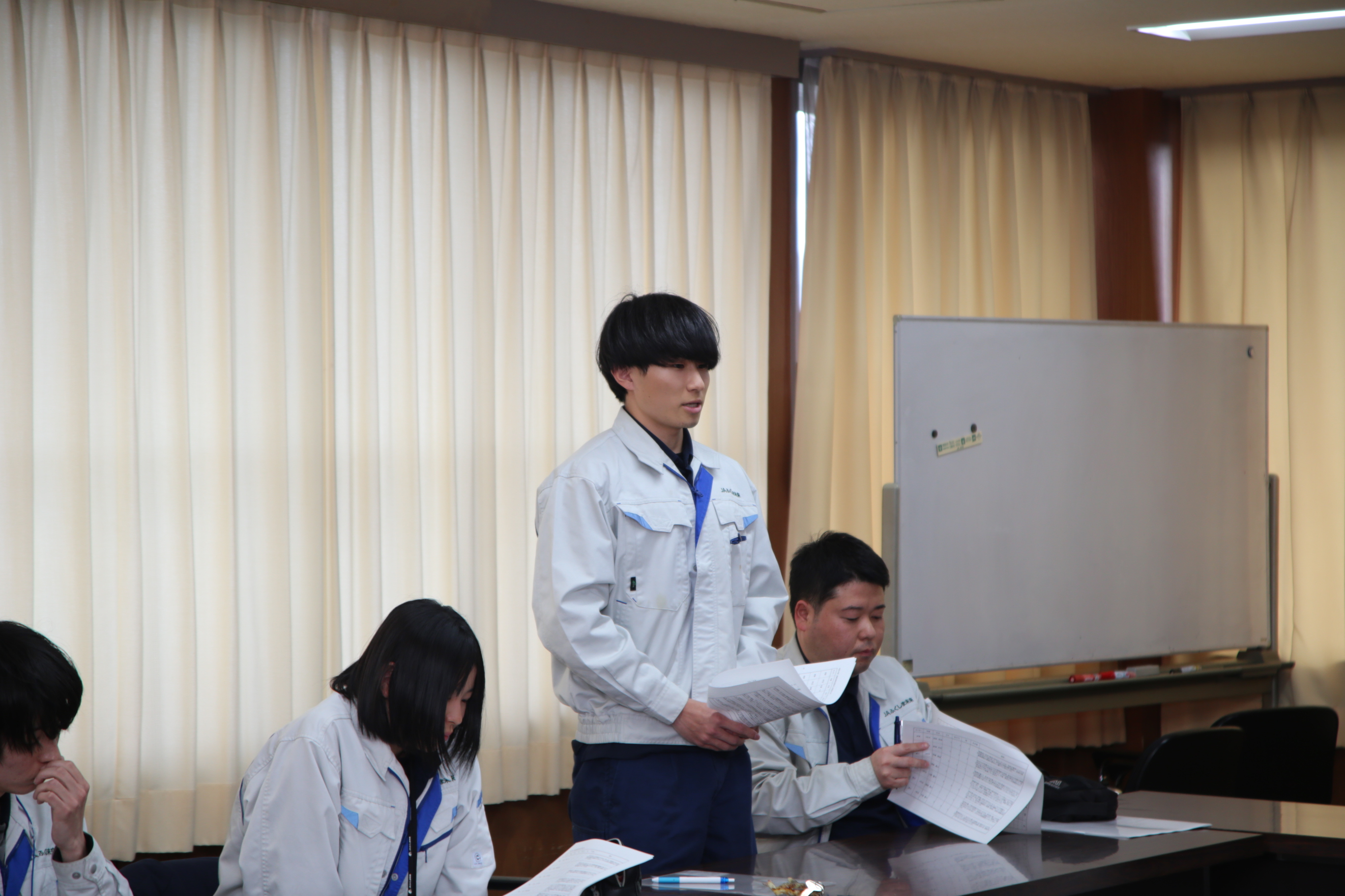 当JA伊達地区本部は19日、伊達市で営農指導員資質向上研修報告会を開きました。営農指導員歴5年未満の職員を対象に、1年を通じて全25回にわたり実施した研修の成果を共有しました。