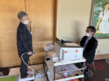当JA女性部伊達総合支部は20日、福島市の摺上亭大鳥で日帰り健診を行いました。部員20人が参加しました。身長・体重測定や血液検査などの一般的な健康診断に加え、骨密度検査や毛細血管観察、今年度から始まった筋力測定を実施しました。健診終了後は美味しい弁当を楽しみ、健診結果や健康講話を聞きました。
