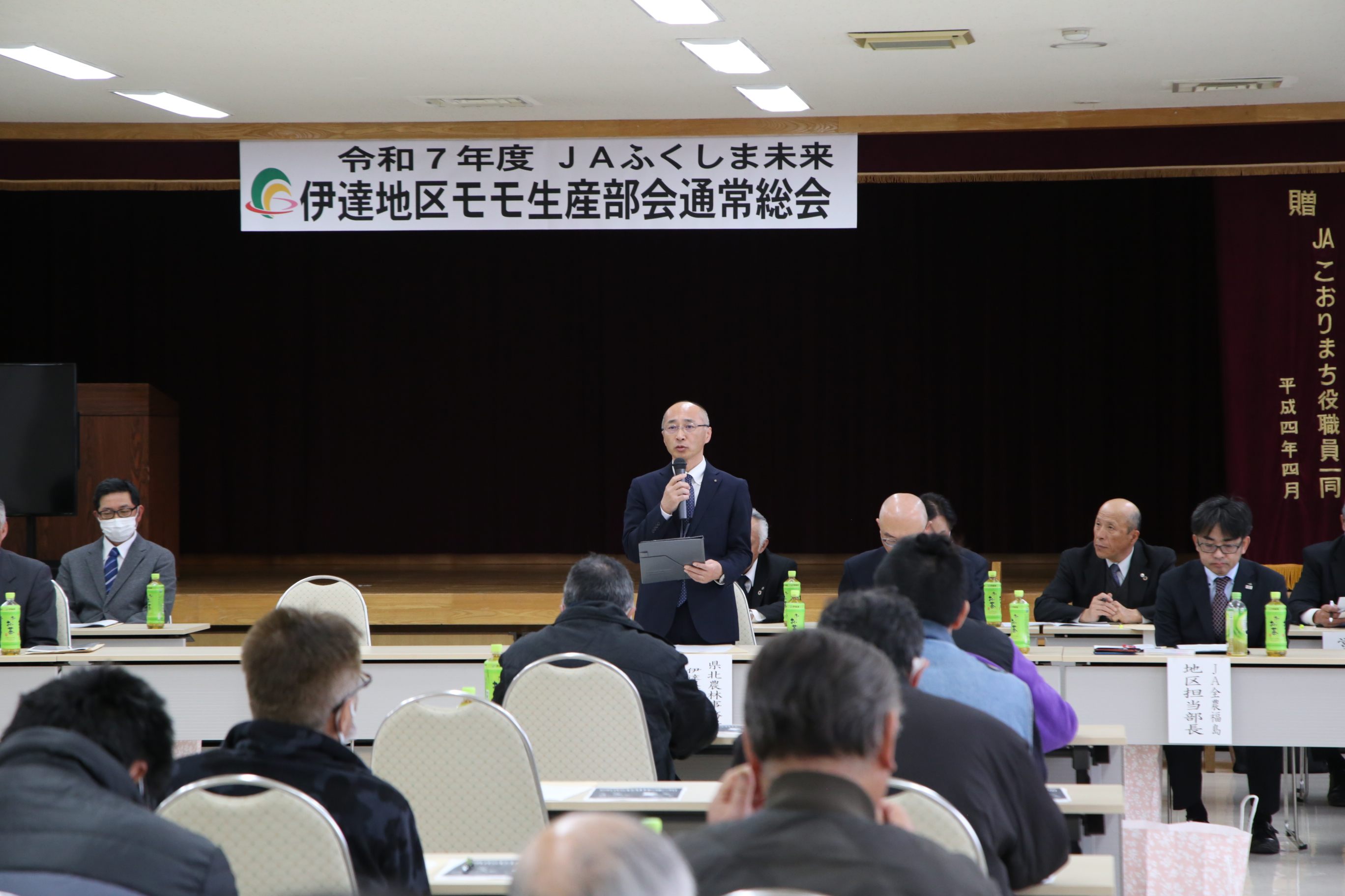 当JA伊達地区モモ生産部会は26日、桑折町のJA桑折支店で通常総会を開きました。福島県県北農林事務所伊達普及所やJA全農福島、生産者、JA役職員ら約60人が出席し、2025年度の事業報告と2026年度の事業計画について協議しました。