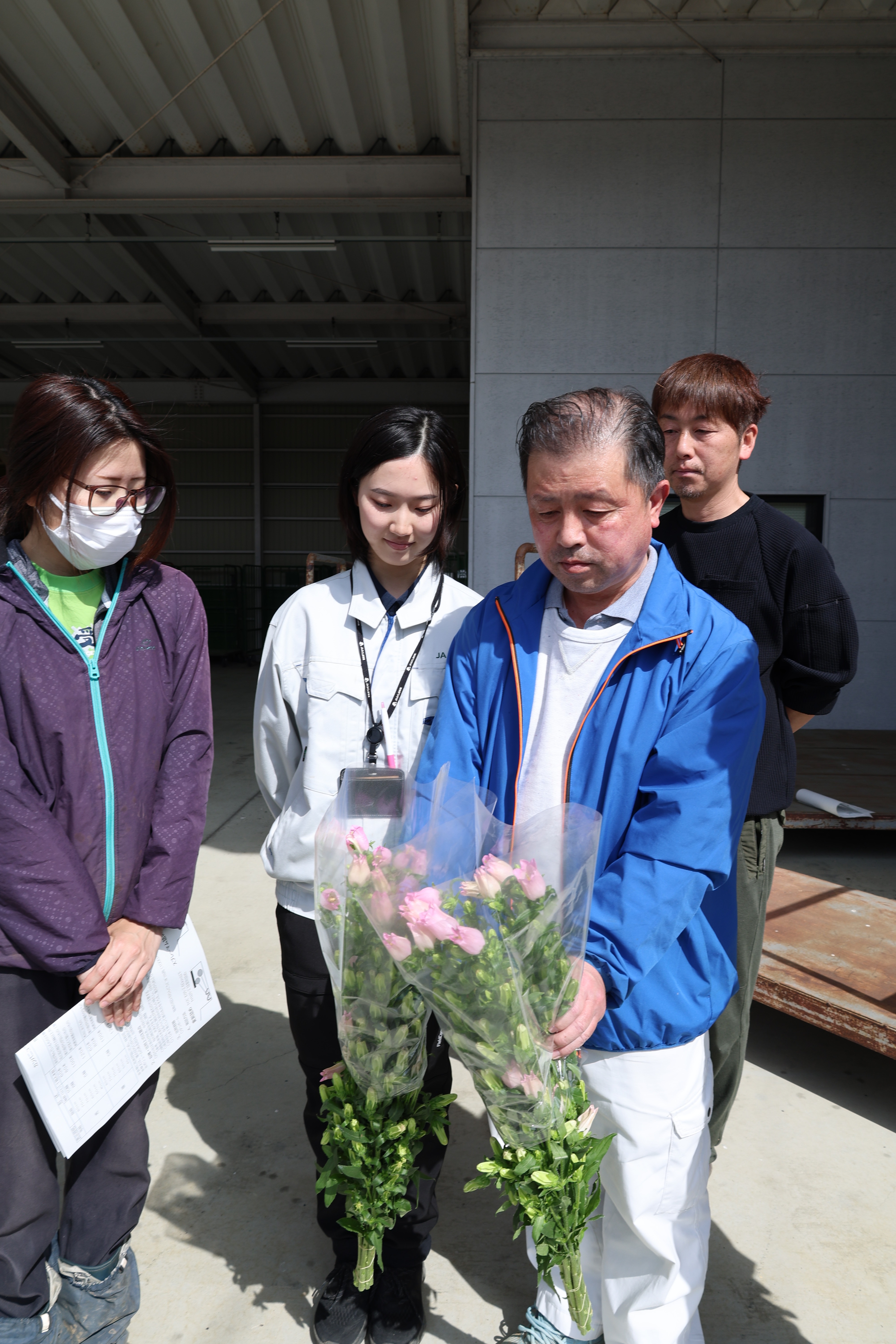 JA花き部会スプレーマム班の氏家忠男班長は「これからの時期は気温差が出てくるので、栽培管理に気をつけていこう」と話しました。