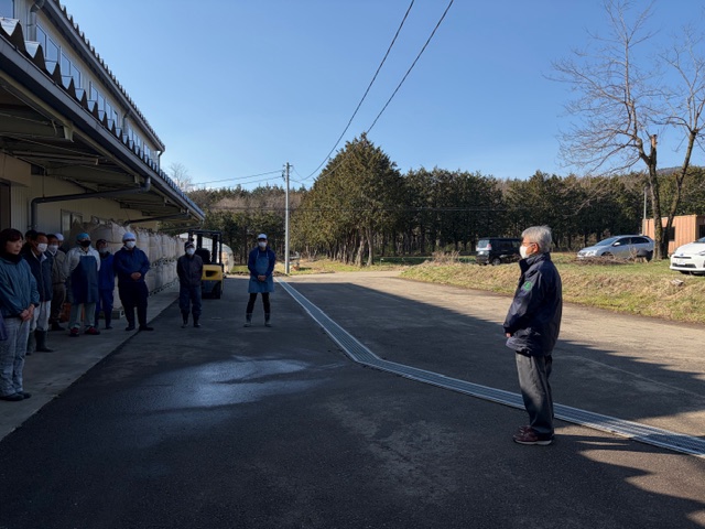 飯野育苗センターで末永喜広福島地区役員代表は「農家の皆さんにすばらしい苗を作りおいしい米を収穫してもらおう」と呼びかけました。