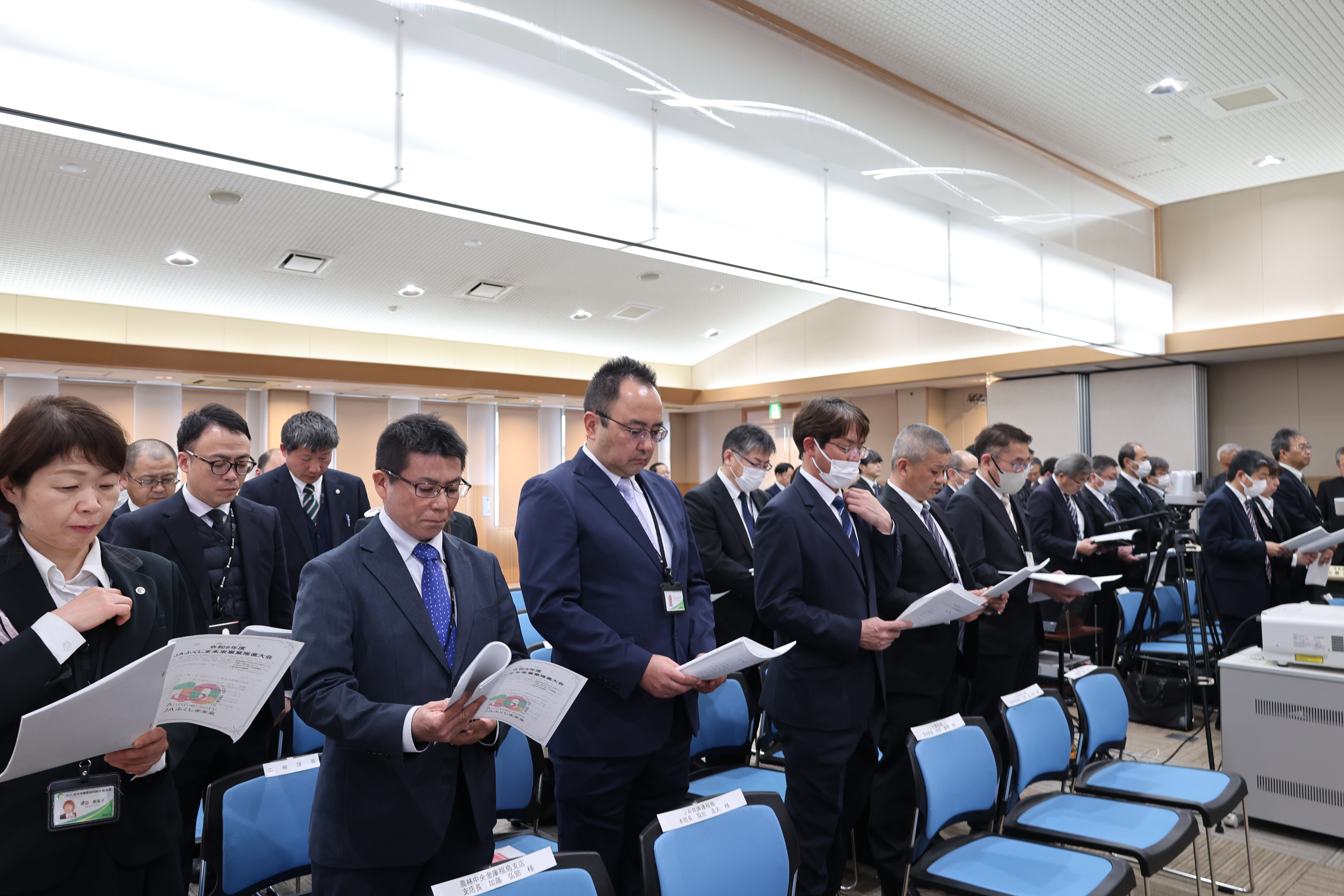 25年度の職員アカデミーで最優秀賞を受賞した、職員のエンゲージメントを高める取り組みについての発表動画を視聴。さらに、事業計画やコンプライアンス遵守、働き方改善対策の徹底について共有しました。