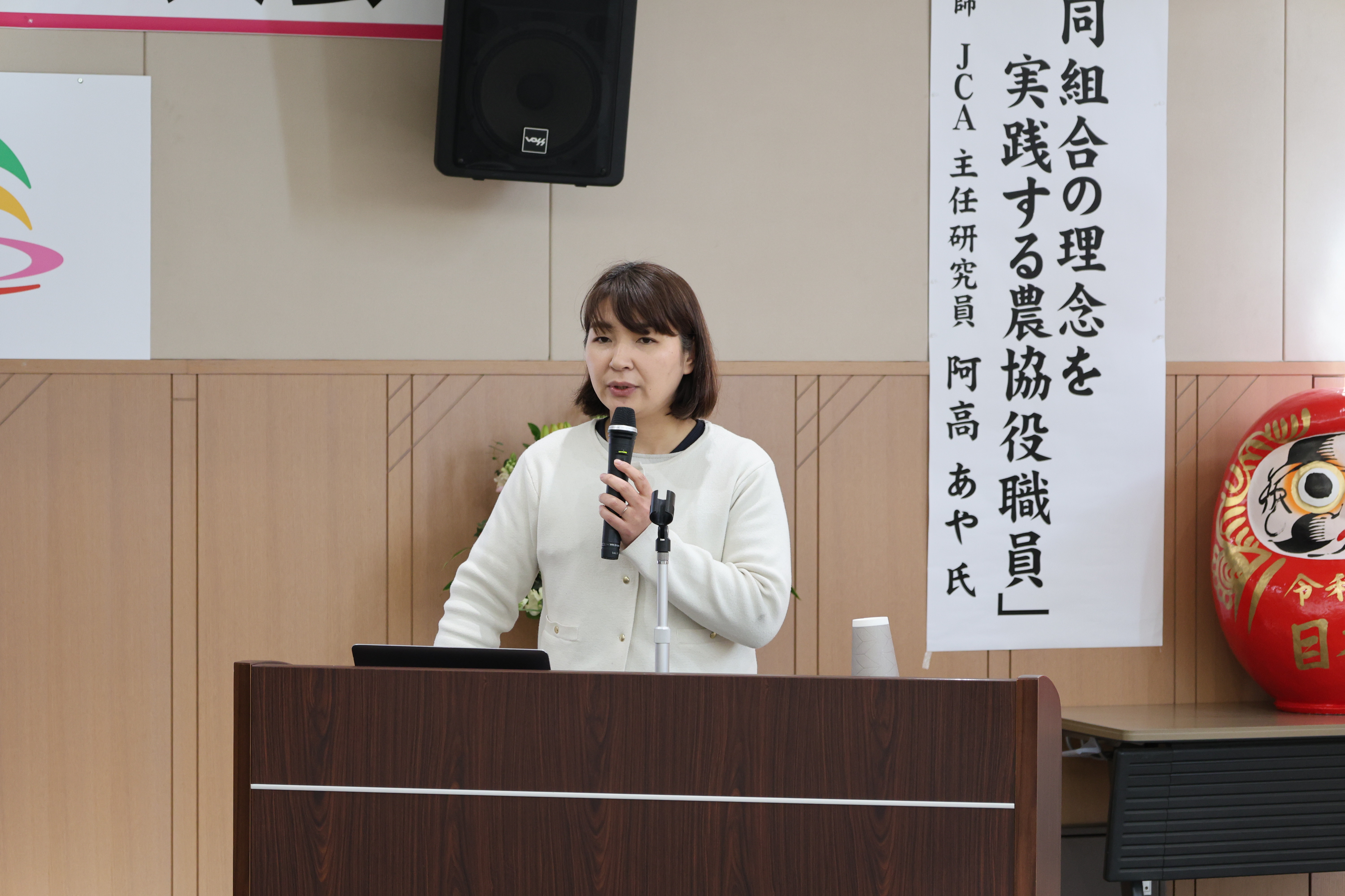 JCAの阿高あや主任研究員による「協同組合の理念を実践する農協役職員」と題した講演も行われました。