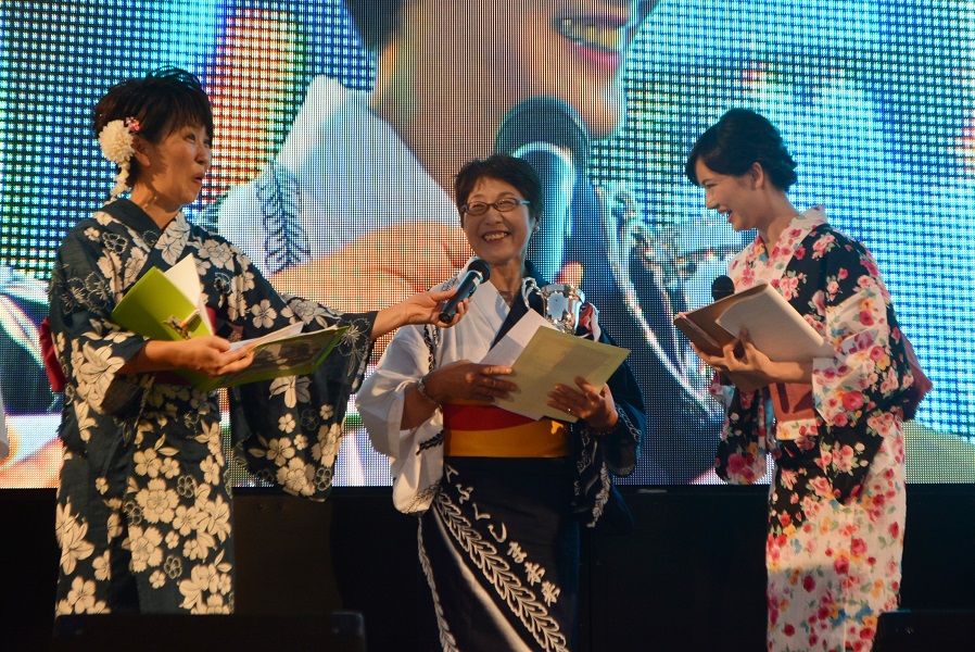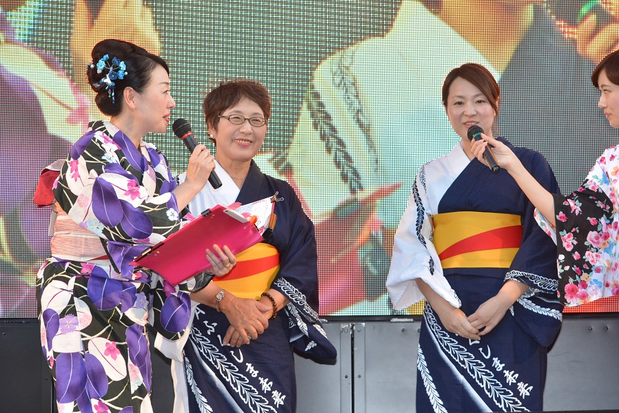 40分間の踊りの後、審査結果が発表され、当JAは見事第1部の「大わらじ賞」に輝きました。ステージ上で賞状とトロフィーを受け取った橘内部長は「まさか受賞できると思わなかった。女性部の皆さんが一丸となって頑張り、そして、福岡からも助っ人が来てくれたおかげ」と満面の笑みで話しました。