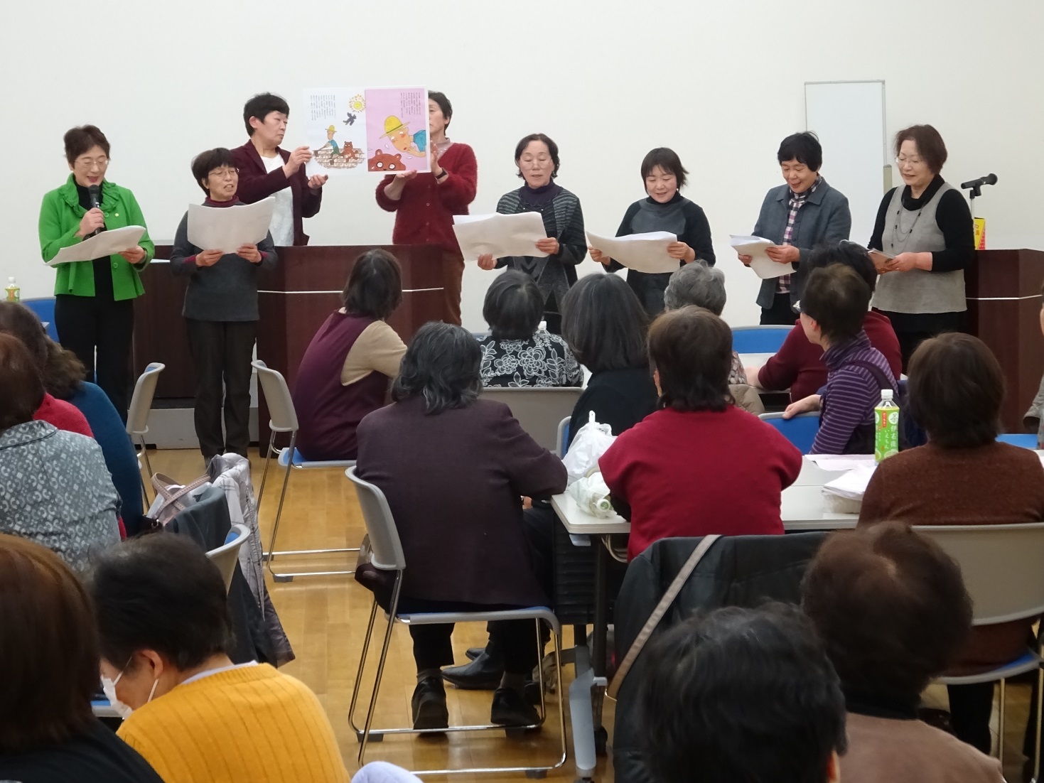 その他、世代ごとの活動内容の紹介や、読み聞かせグループ「あのね」の会による「家の光』読み聞かせ、職員講師による「ざくざく踊り」講習会など、盛りだくさんの内容でした。どれも部員が実行委員会を開いてアイディアを出し合った内容で、最後にはお楽しみ抽選会で様々な景品が全員に配られました。
