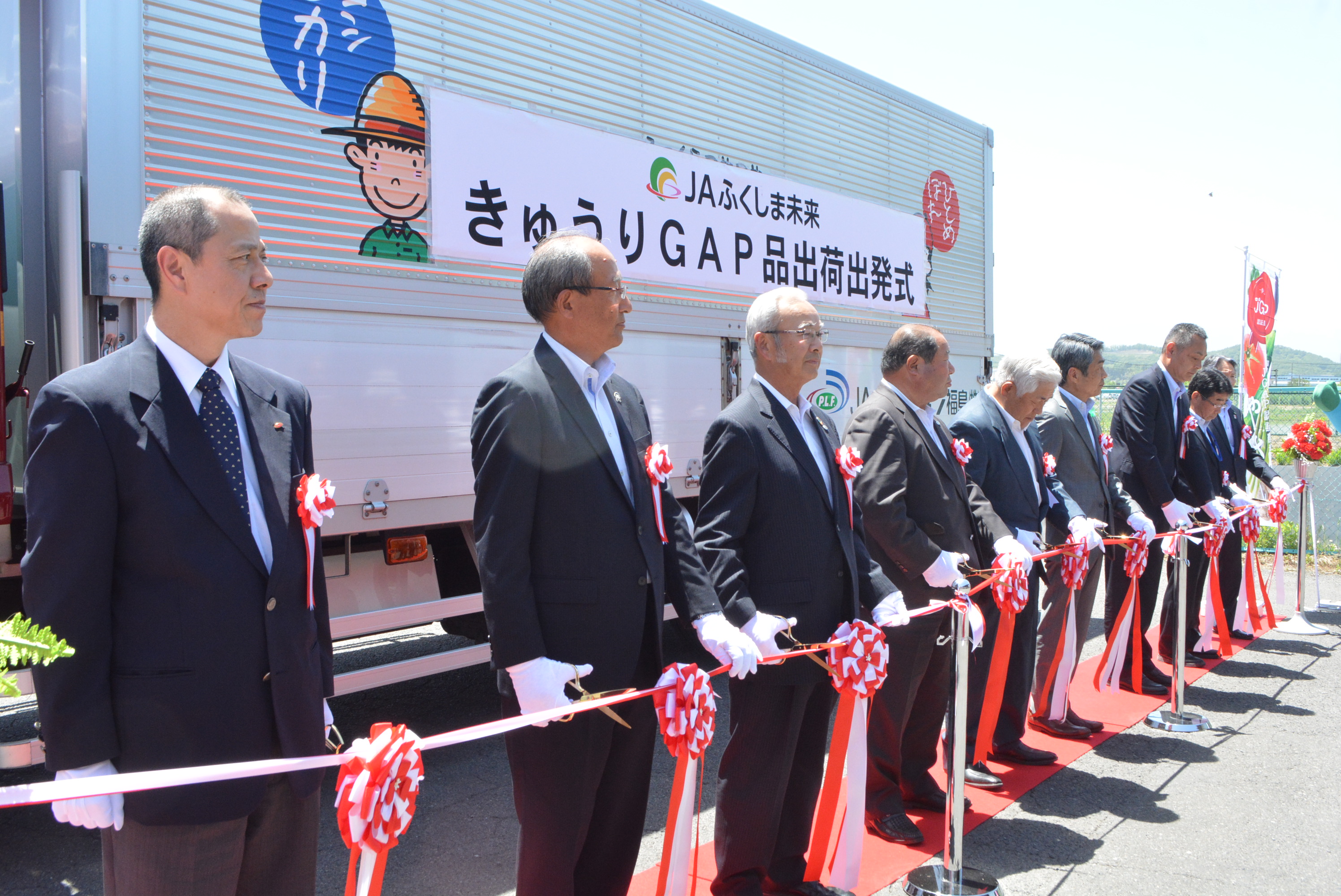 当JAきゅうり生産部会連絡協議会は23日、きゅうりのJGAP団体認証取得後初となる出荷を記念し、きゅうりJGAP品出荷出発式を開きました。今年度JAでは、JGAP認証品出荷1000tを目標に掲げます。